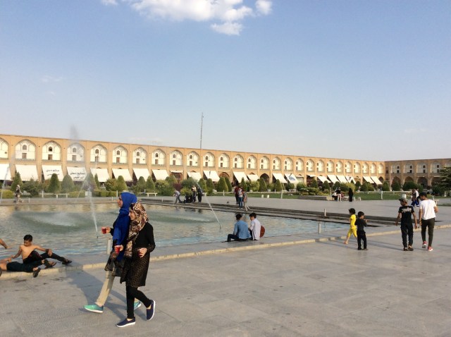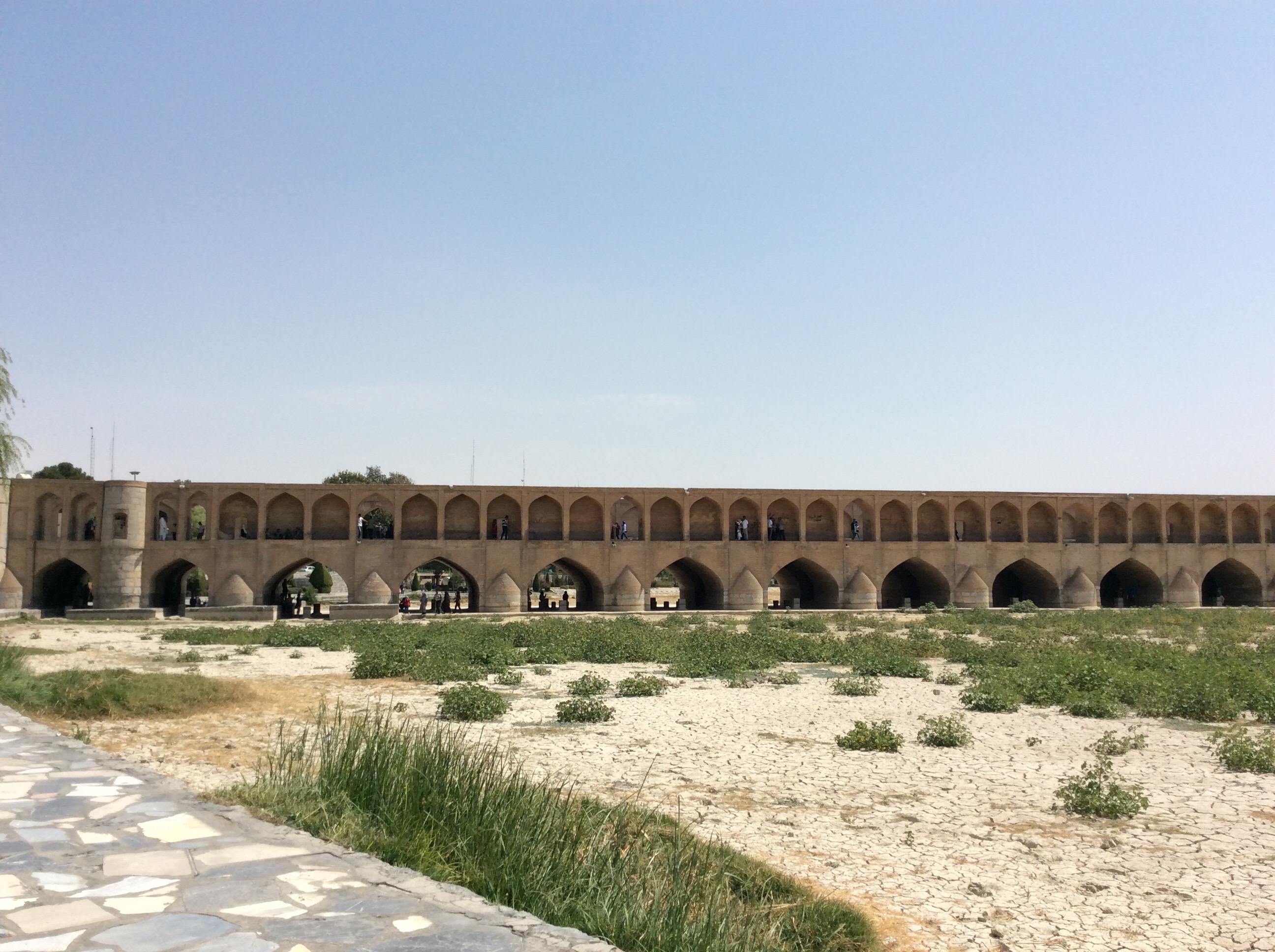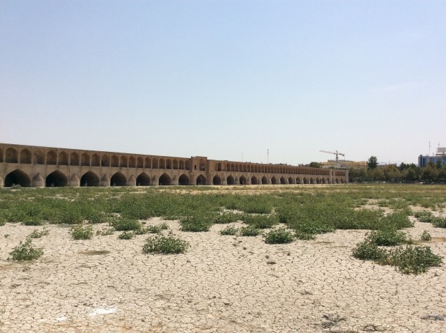 Die Bewohner sind typisch iranisch nett, aber etwas reservierter. Man merkt die touristische Großstadt. Auch im Bezug auf Fremdsprachenkenntnisse. Zusammenfassend: Super geschlafen, dem Hintern eine Ruhepause gegönnt und die Beinmuskulatur ordentlich beansprucht, da ich den ganzen Tag kreuz und quer durch die inneren Bezirke einer 5 Millionen Stadt geschlendert bin. Die Stadt ist berühmt wegen ihrer Brücken, leider derzeit ohne Wasser. Si-o Se Pol, gebaut 1602, 290 Meter lang, 14 breit und mit 33 Bögen.