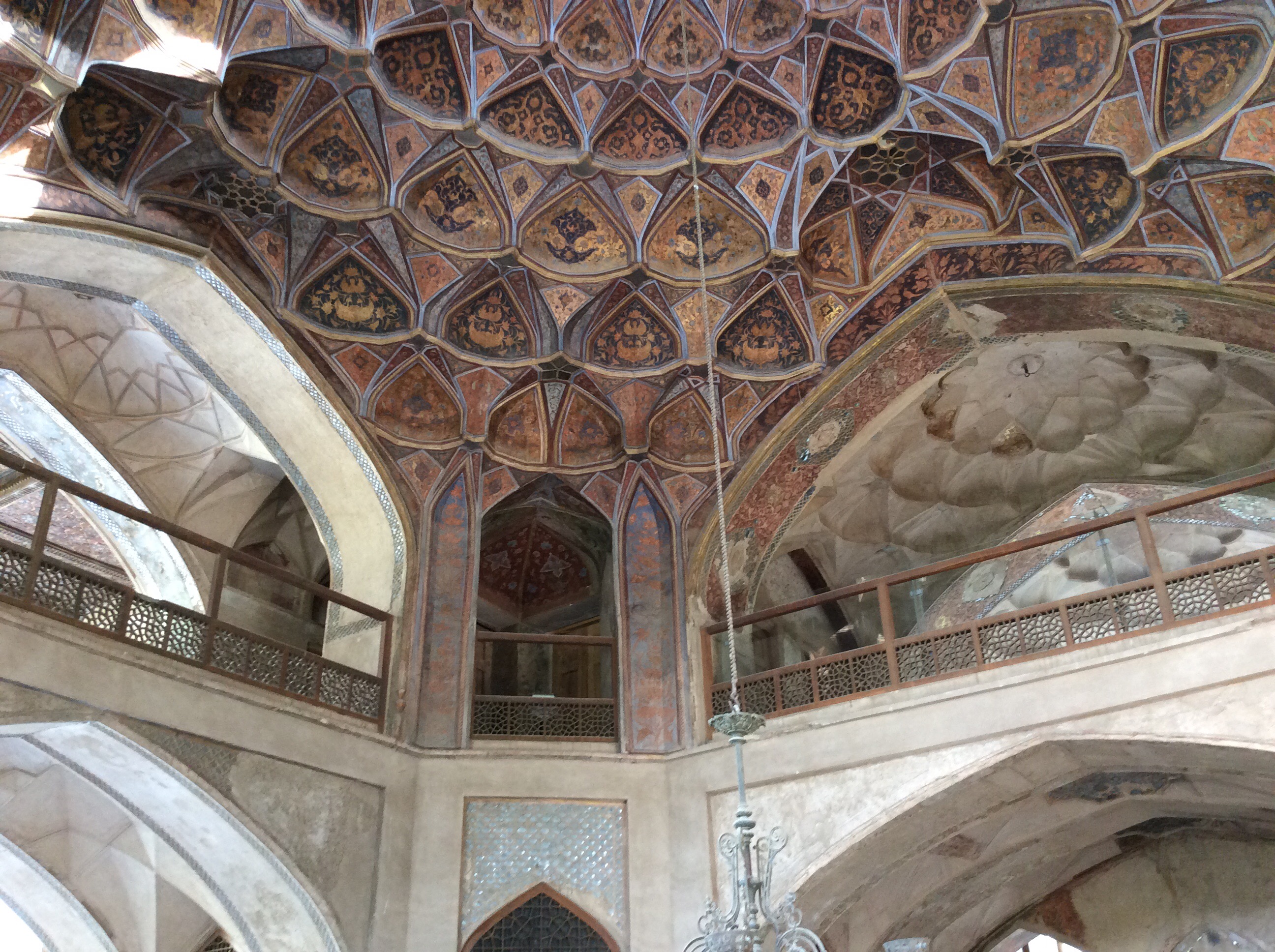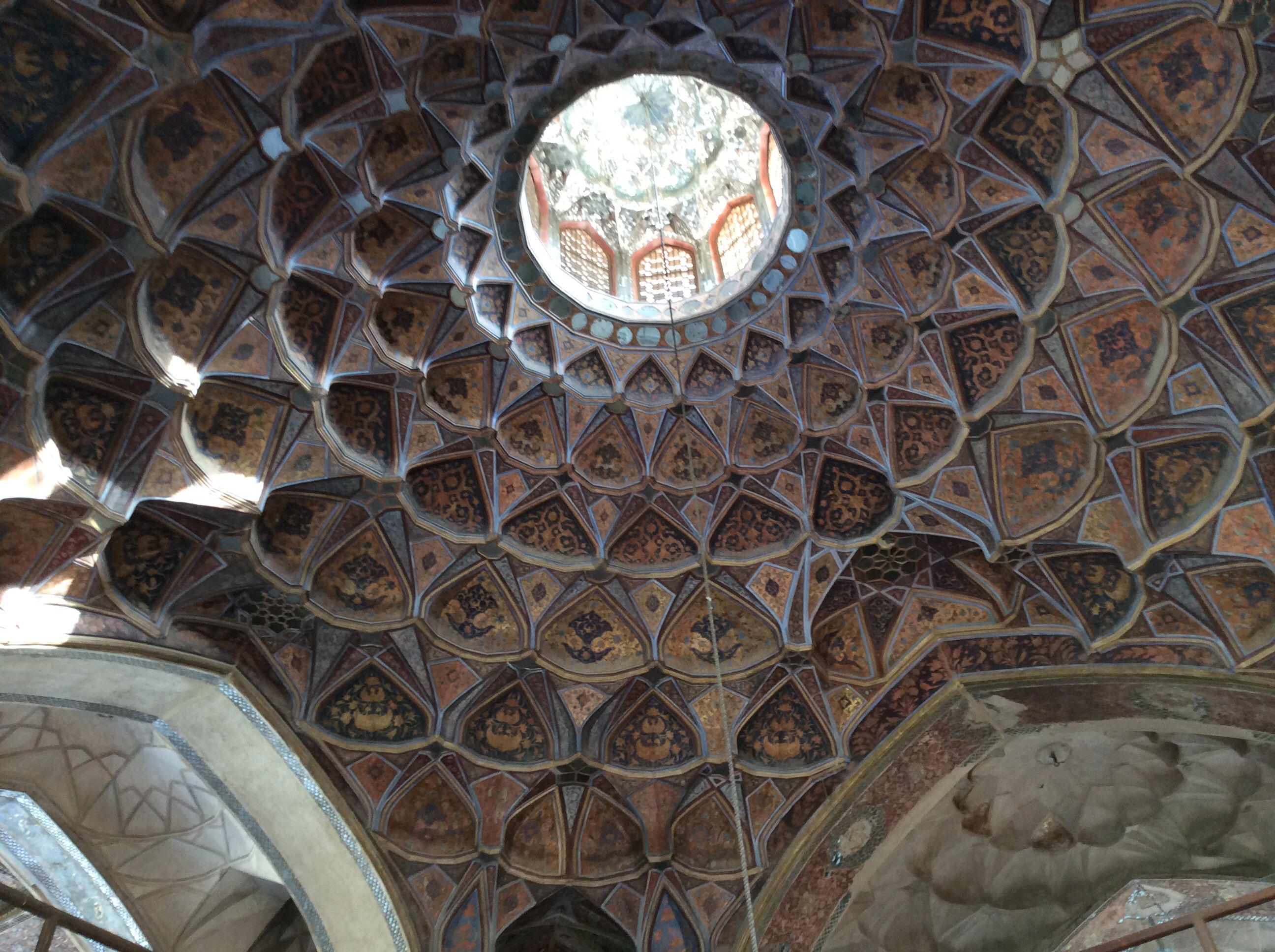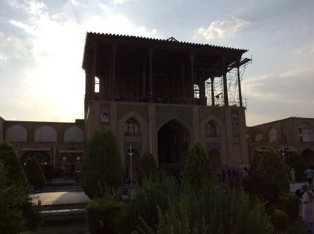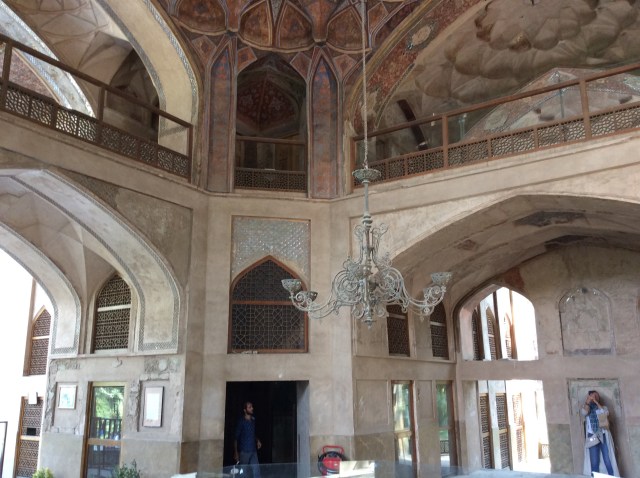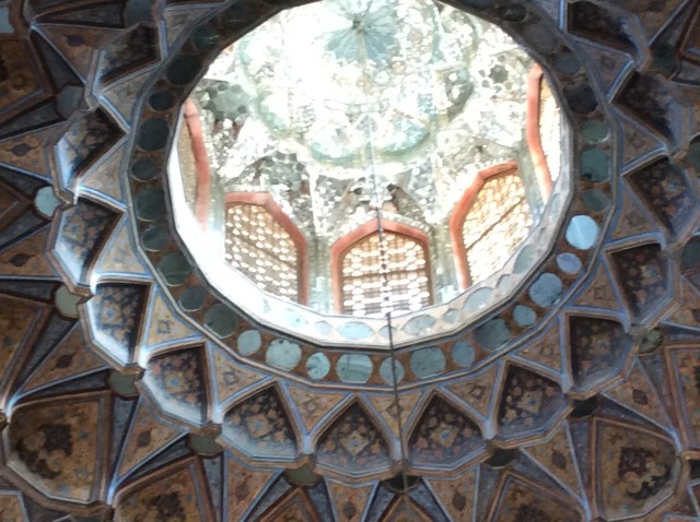 Im Zentrum des Nachtigallen-Gartens liegt der „Pavillon“ Hasht Behesht. Errichtet 1670, die Innenkuppel ist mit Spiegeln ausgekleidet, darum ist es auf dem Foto soll hell!