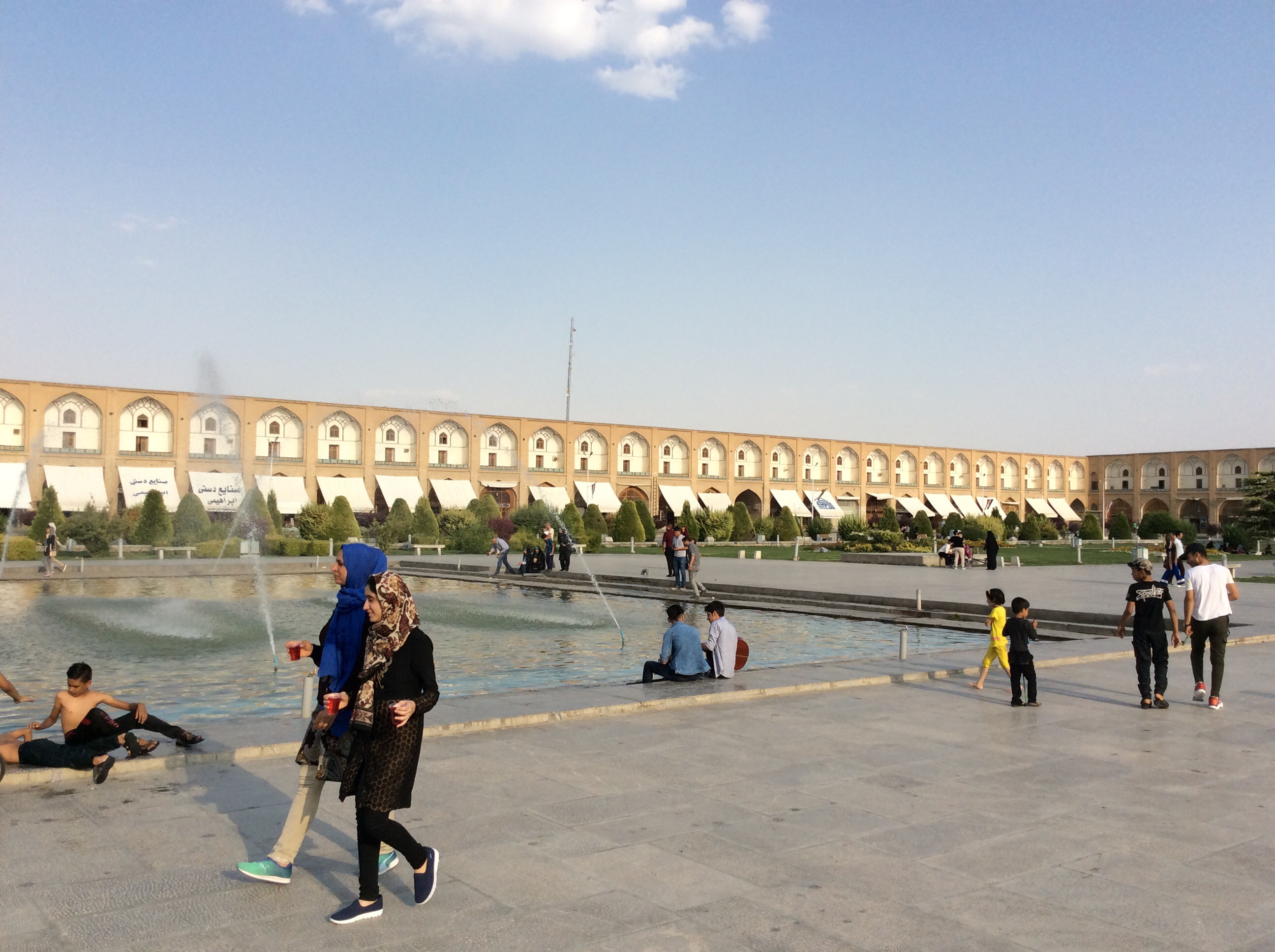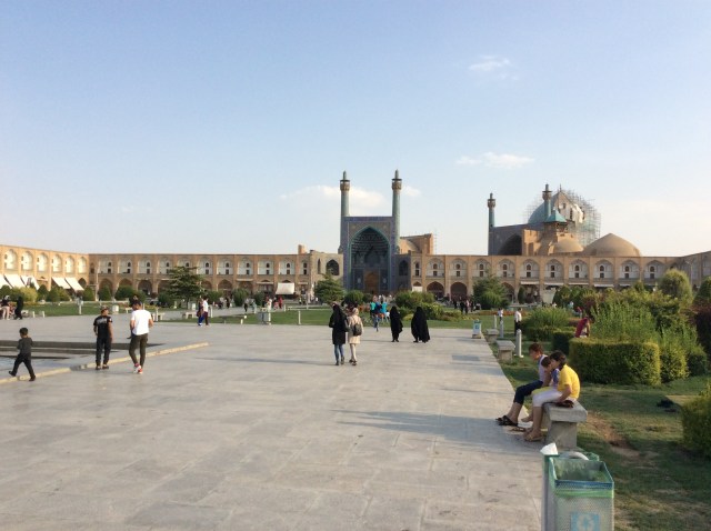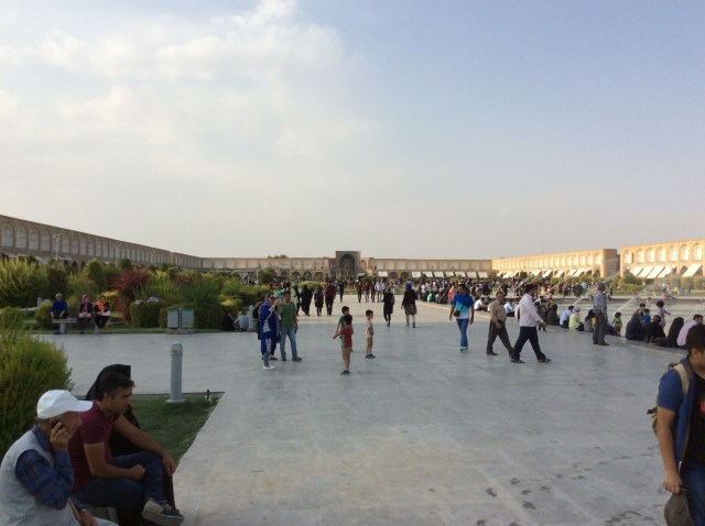 Für mich das Highlight war der „Platz“. Der Meydan-e Imam, 524 x 160 Meter im Ausmaß. Sicherlich einer der schönsten Plätze auf dieser Welt, zumindest wenn man einen Isfahanie fragt. Heute ist Freitag = Sonntag für die Iraner. Der Platz ist bis 14:30 gesperrt, da sich bis zu diesem Zeitpunkt tausende Gläubige einfinden zum Freitagsgebet.