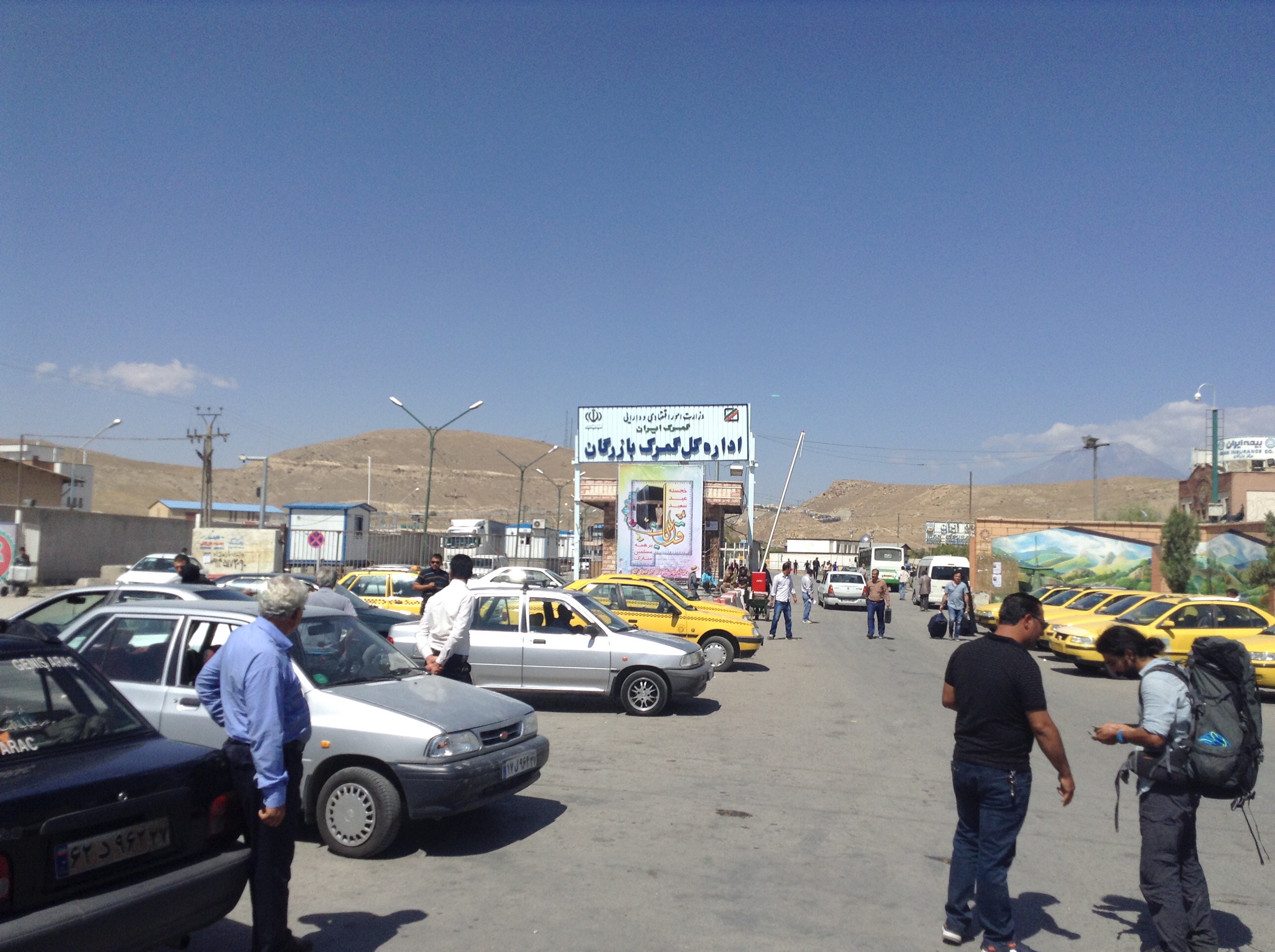 Naja, da der „Kollege“ ja wild am PC Daten eingegeben hatte, sollte es das wohl sein! War es aber nicht, als ich schon am letzten Tor stand und durch die Gitterstäbe das “ Wellcome To Iran“ sah, war meine Glückssträhne vorläufig vorbei. Der nette Zöllner fragte mich nach dem Ausreisestempel, ich verneinte und er machte mir klar, dass ich meine BMW hier abstellen sollte und 50 Meter zurück müsste in eine Halle, wo angeblich der richtige Beamte mit dem einzigen Stempel thronen sollte….. Ich also brav zurück in die Halle und musste erstmal mal einen kurzen Schock verkraften: Vor mir standen mindestens 100 Türken und Iraner mit ihrem Handgepäck und manchmal etwas mehr.