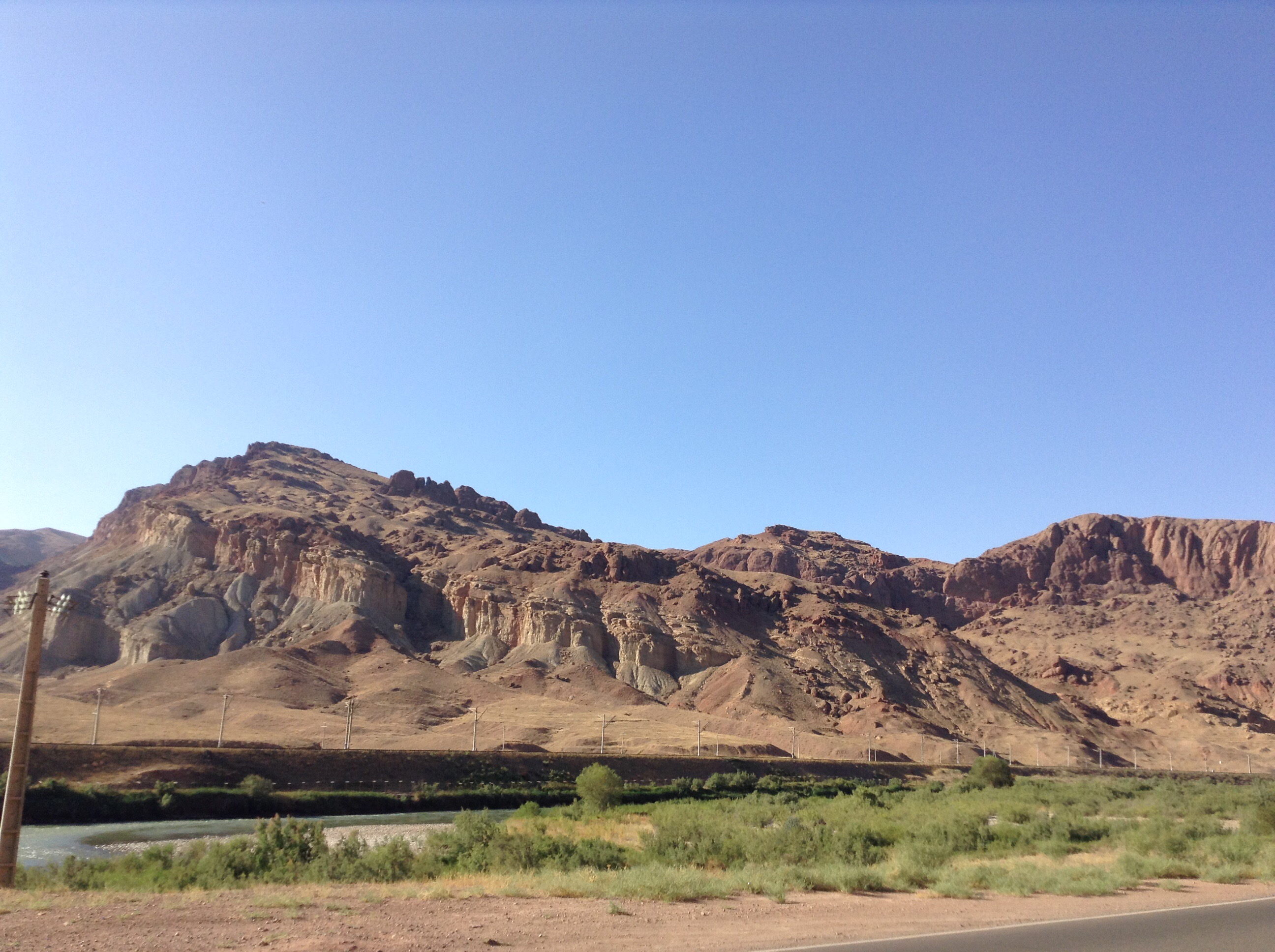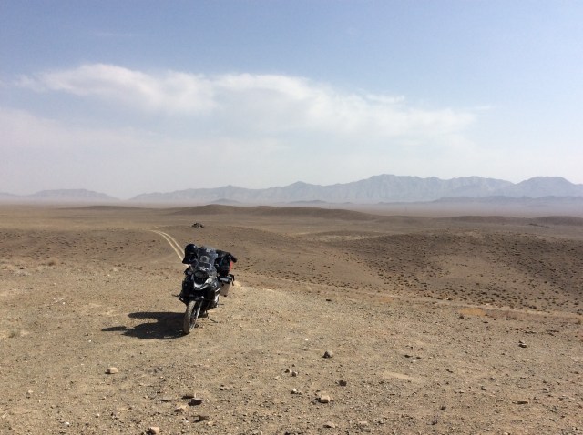 Nach zwei erholsamen Tagen in Isfahan hieß es Abschied nehmen von dieser sehr offenen und schönen Millionenstadt. Um vor dem Hauptverkehr noch aus der Innenstadt herauszukommen, bin ich früh aufgestanden und habe meine Gummikuh gepackt. Gegen 9:00 war ich bereits auf den Aussenringen und dann führte mich die Straße immer gerade aus. Insgesamt lagen 500 km vor mir. Größtenteils Autobahn, aber ich hatte auch eine 50 km Abkürzung durch die Wüste eingeplant. Mitten im Nirgendwo  – ein schattiges Plätzchen zur Rast.