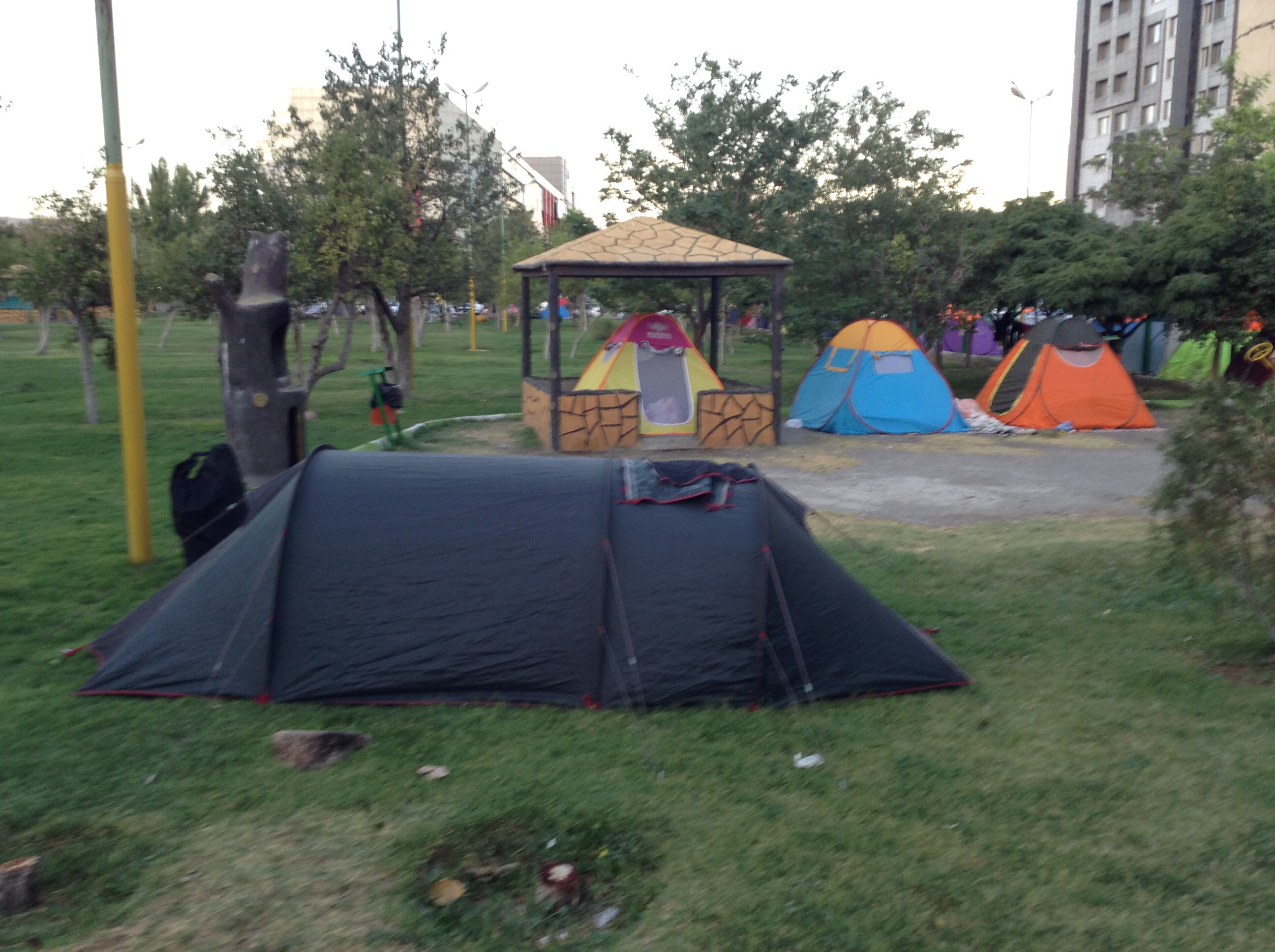 Gegen 19:30 kam ich dann an meinem Etappenziel in Täbris an. Nach kurzer Sucherei fand ich den besagten Stadtpark und schlug dort mein ⛺️ auf. Im Park gibt es Trinkwasser und Sanitäranlagen, und in meiner Nachbarschaft campen 40-50 iranische Familien. Klar hatte ich recht schnell Anschluss und dazu gab es noch ein leckeres Essen. 👍