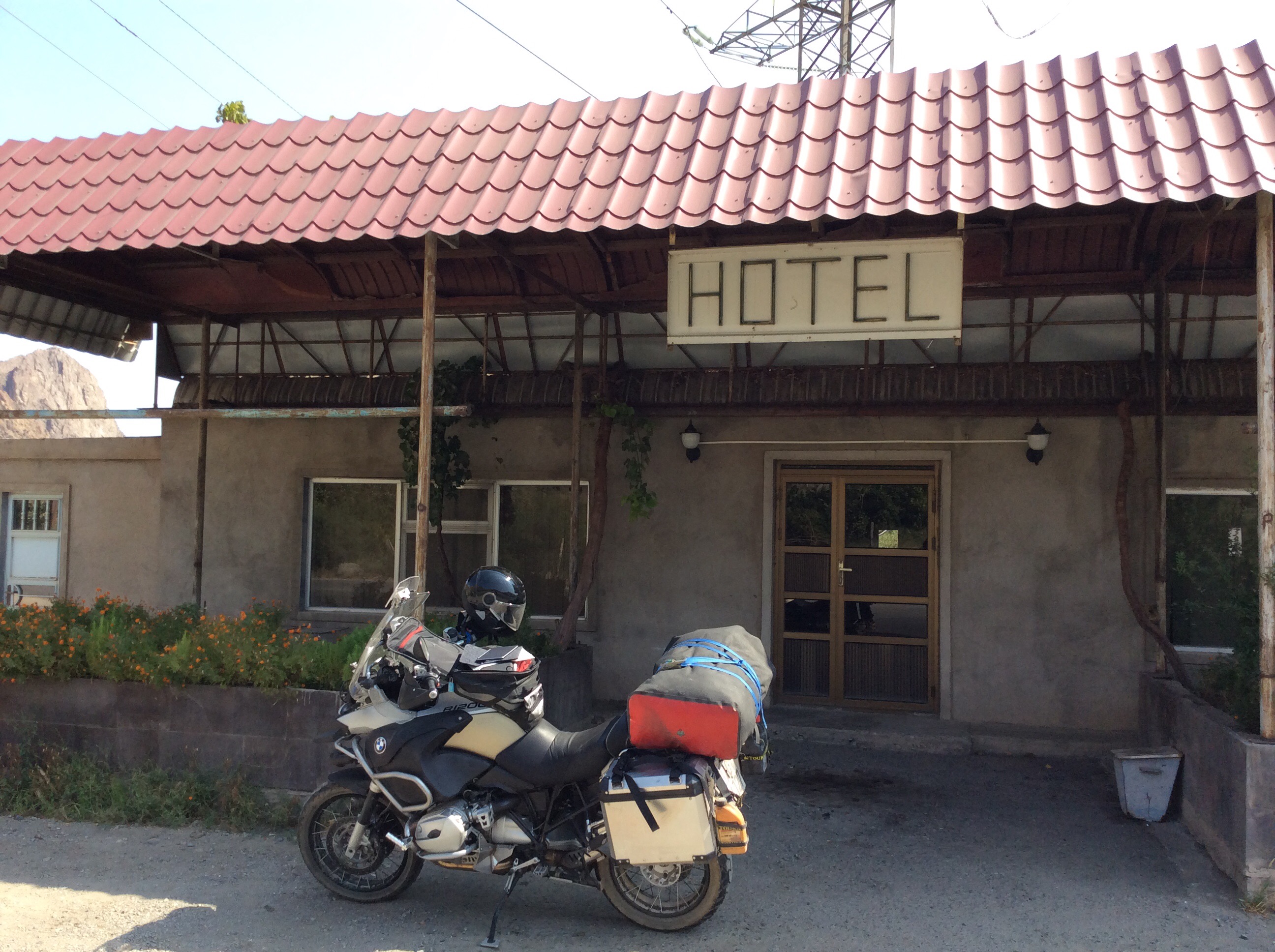 Gegen 18:30 Uhr bin ich dann kurz hinter Eriwan und noch 170 km von meinem Tagesziel entfernt. Aber genug ist genug, es wird schon merklich dunkler. Eine dritte Nacht im ⛺️ will ich eigentlich nicht, aber ich möchte es auch nicht so naß etliche Tage im luftdichten Packsack belassen. So kommt mir ein Motel recht gelegen. Mein Zimmer ist nett und man erlaubt mir, auf der Rasenfläche das Zelt zum Trocknen kurz aufzustellen. Danach heißt es dann für mich, endlich duschen und nach 2 Tagen rasieren, herrlich.