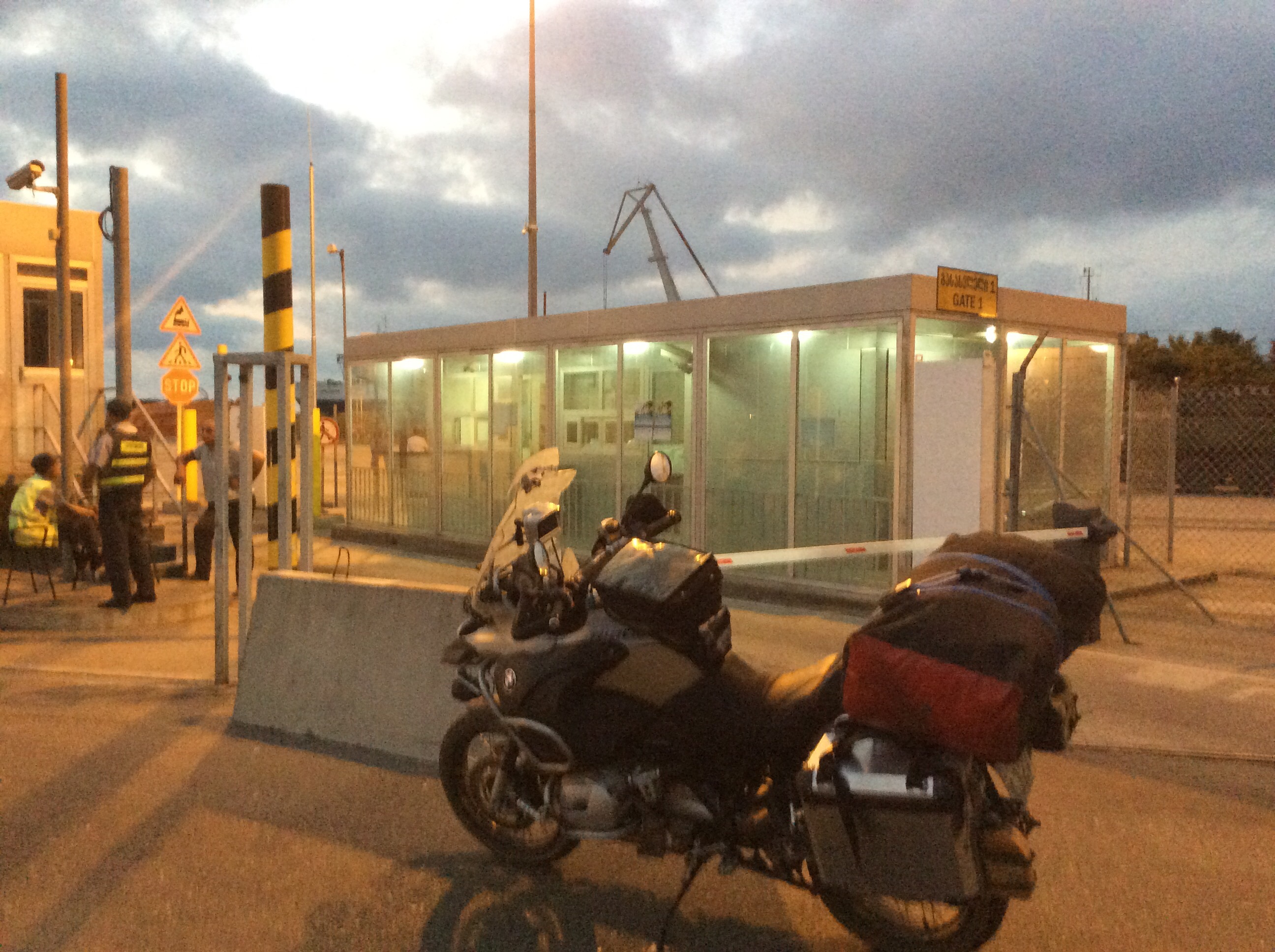Ich hatte mich aber für Poti entschieden, da eine Abreise über Batumi eine Verkürzung meiner Reise um mehrere Tage bedeutet hätte. Da stand ich nun um 19:30 Uhr und frage mich das erste Mal, warum ich mich heute so beeilt hatte….. Ist der Mensch nicht ungerecht? Ich sollte froh sein, es geschafft zu haben, war ich auch – naja ein bisschen. Um 19:30 Uhr bekam ich dann das Zeichen, die Straße hinaufzufahren und mich im Hafen einzufinden. Da Stand ich nun um 19:35 Uhr vor der Zollstation und wartete.