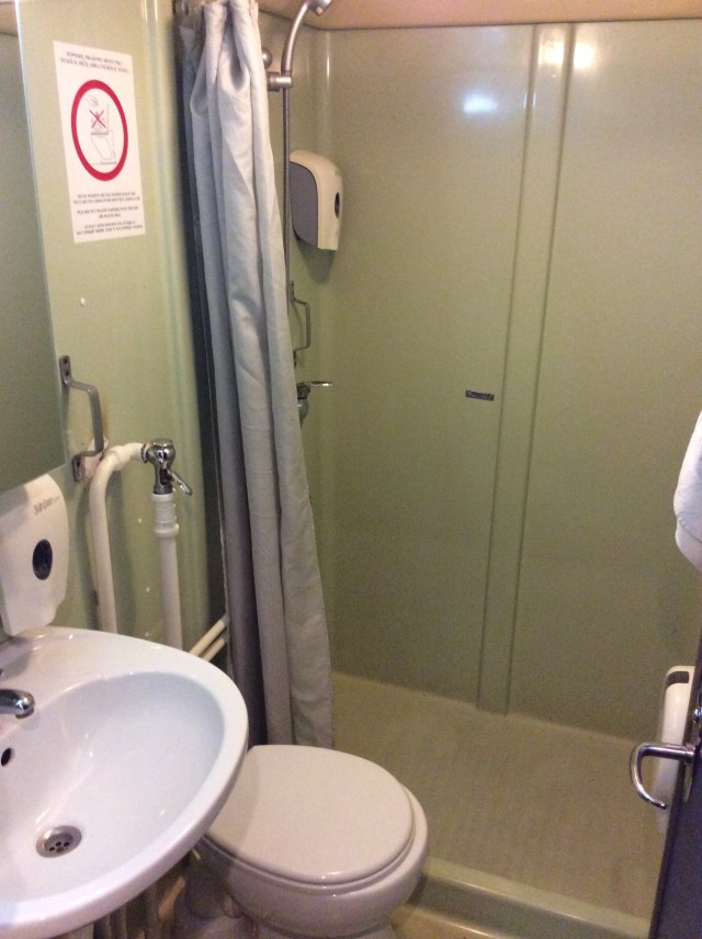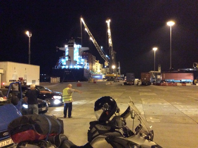 Alles 👌 und für mich allein, die Alternative wären 4er Stockbetten gewesen. Ich pellte mich aus meinen klatschnassen Motorradsachen – stinke ich so? – und nahm erst einmal eine Dusche. Kurze SMS in die Heimat, in der Bar ein großes Wasser ordern und das erste 🍻 seit zwei Wochen. Lecker 😋. Nachdem nun die Privaten alle an Bord gegangen waren, erfolge die Beladung der LKWs. Dies ging wesentlich schneller und so hoffte ich, dass wir dann pünktlich um 0:00 Uhr ablegen würden. Mit dieser Gewissheit ging ich zu Bett. Gute Nacht!