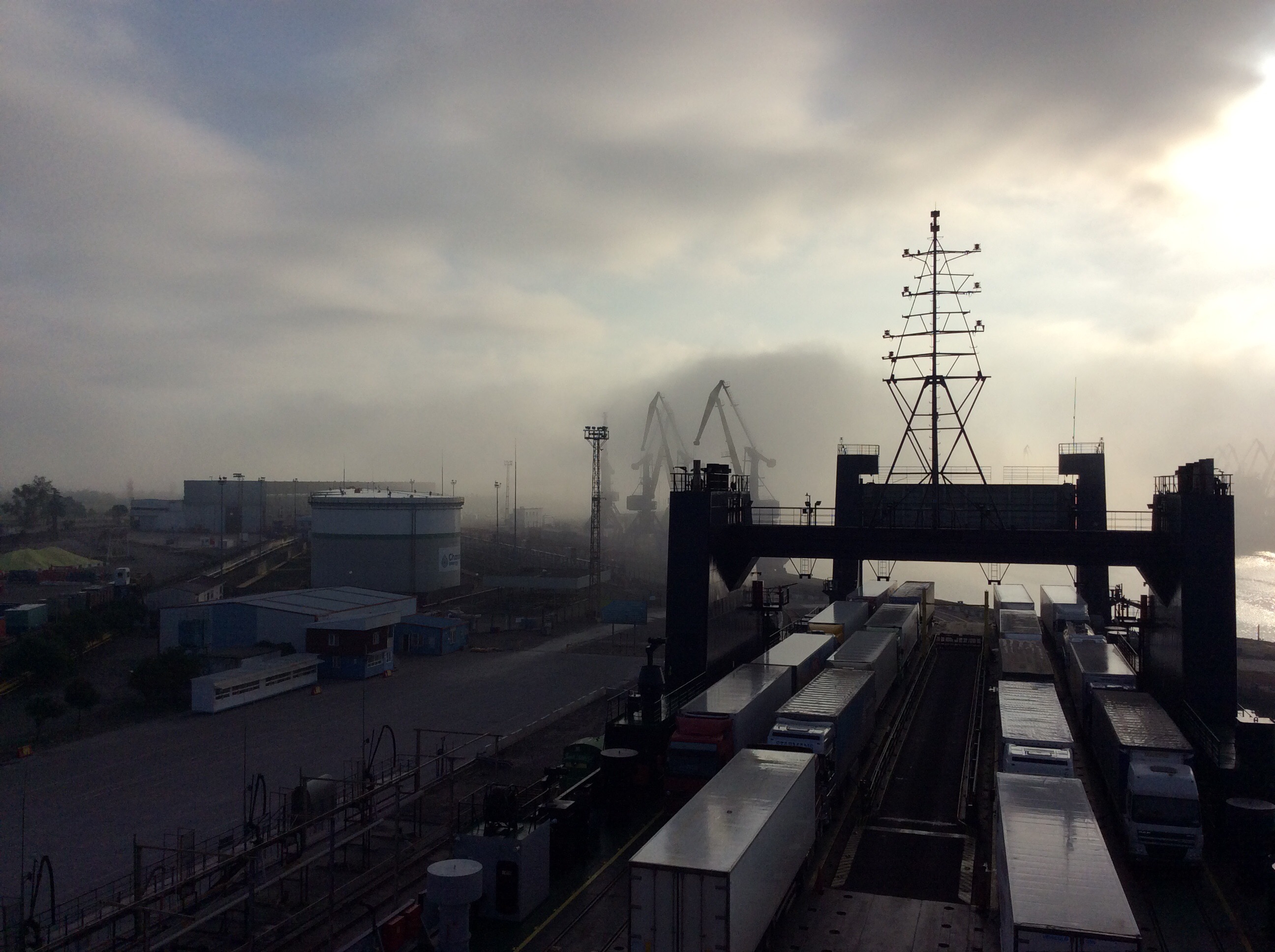 Es gab bei mehreren LKW Probleme betreffend der Verzollung und die Herren Zöllner haben ja schließlich auch das Recht auf Feierabend. So ging das Ganze heute morgen weiter und erst nach einem deftigen Frühstück legten wir gegen 9:00 Uhr ab.