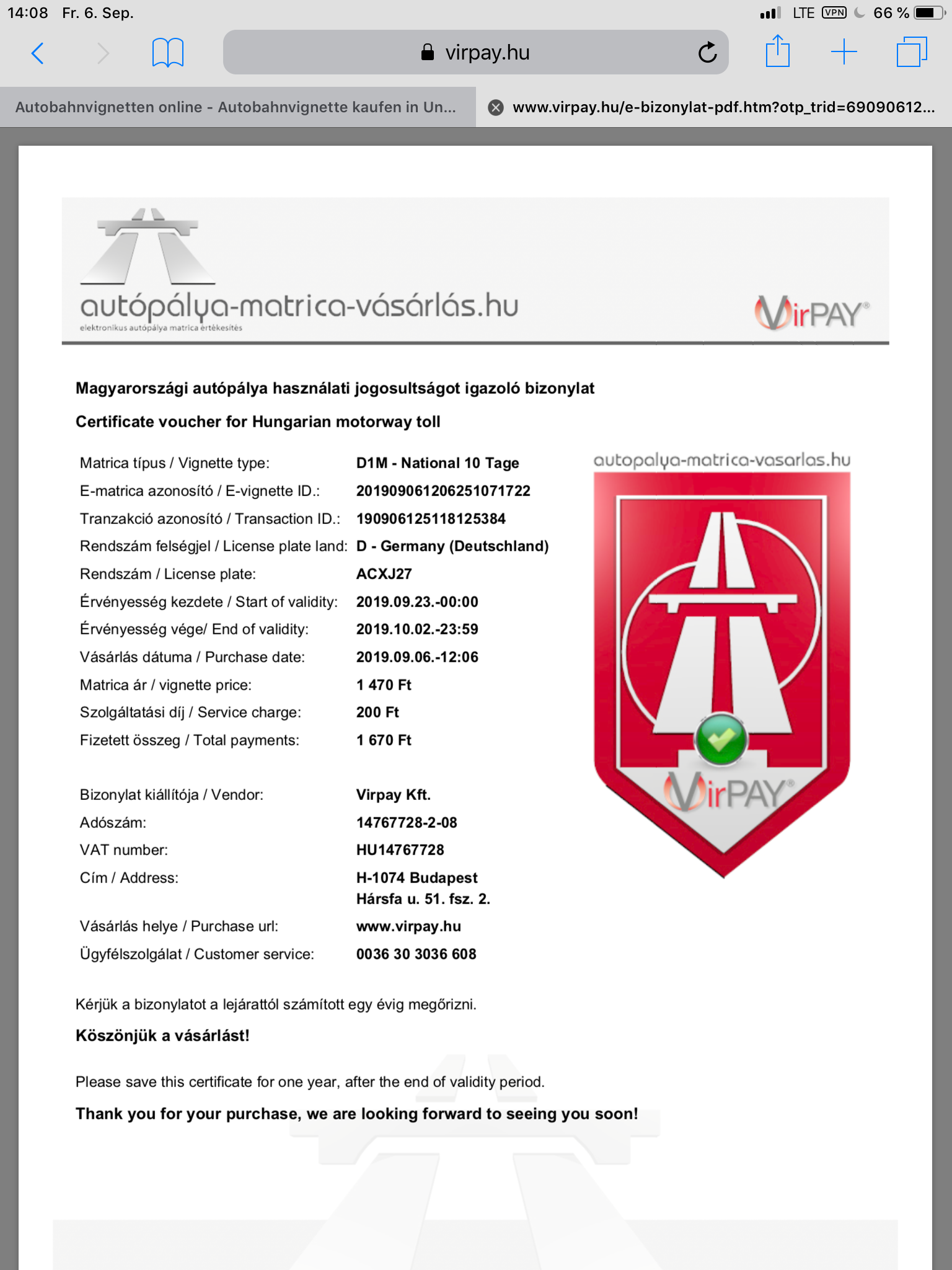 Noch etwas zum Thema Maut. Einzig Türkei 🇹🇷, Turkmenistan 🇹🇲 und Ungarn 🇭🇺 verlangen bei Motorradfahrern eine Straßenmaut. Die einen kassieren in US-Dollar direkt an der Grenze, die anderen erwarten am Liebsten eine Registrierung online. So sieht das Ganze bei den 🇭🇺 aus
