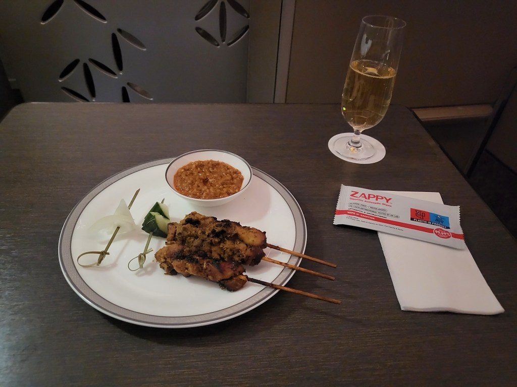 Zur Vorspeise gab es dann noch sehe leckere Satespieße a la Singapur und 50 Gramm Osetra Caviar und zum Nachtisch Käse, Schokoladiges und Desserträume und Obstvariationen. Ich gebe es ja zu, eigentlich hätte ich mir all das schenken können, wenn man bedenkt, was ich mir so innerhalb der letzten 24 Stunden an Kalorien zugeführt hatte, aber sind wir mal ehrlich, ein „Krethi“ kann hier einfach nicht nein sagen, manchmal muß es halt die Anakonda sein! Ich gebe es zu, ich habe mir dann auch noch einen zweiten Hauptgang geordert und einen leckeren Lammrücken verspeist.