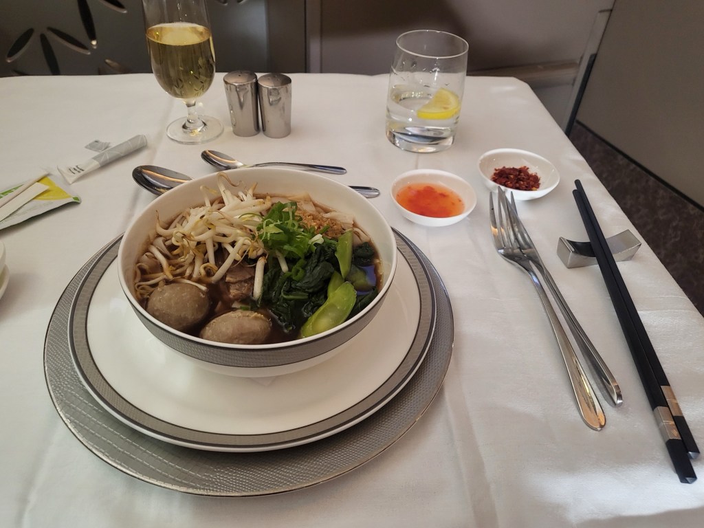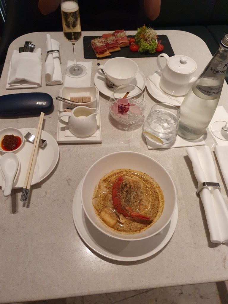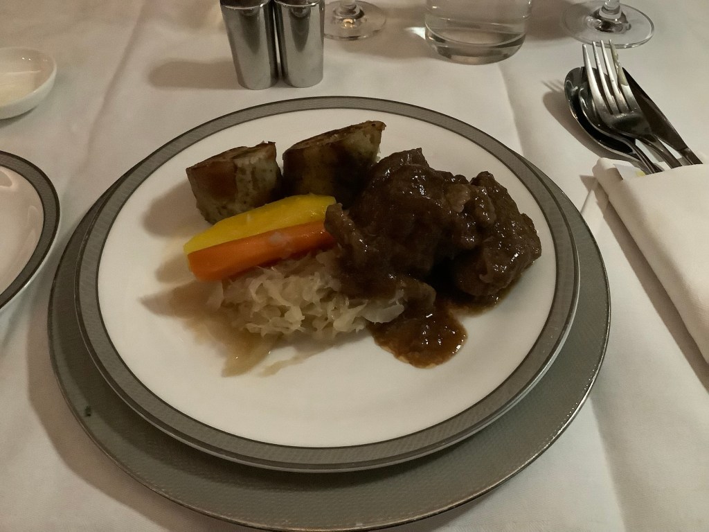 Wir konnten es dann aber doch nicht erwarten und waren froh als das Boarding begann. Diesmal reisen wir Business und saßen ganz vorne. Kaum war das Boarding beendet, gab es bereits den ersten guten Sekt eines deutschen Winzers und die besten Rindsrouladen die ich seit längerem gegessen habe.
