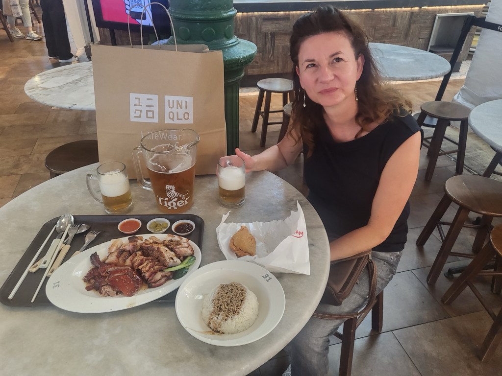 Am Sonntag haben wir dann eine Kollegin und Freundin hier in Downtown getroffen und waren mit Ihr und Ihrem Mann lecker in einen Food Center in der Nähe der Newton Station essen (Newton Food Hacker – auch bekannt aus dem Film „Crazy Rich Asians“). Lohnt sich! Wer also mal hier ist, auf der roten Linie bis Station Newton fahren und dann der Ausschilderung „Food Center“ folgen. Garantiert kein Touri-Nepp und auch bei schlechtem Wetter perfekt geeignet, da der Weg dorthin vollständig überdacht ist. Uns hat’s geschmeckt.