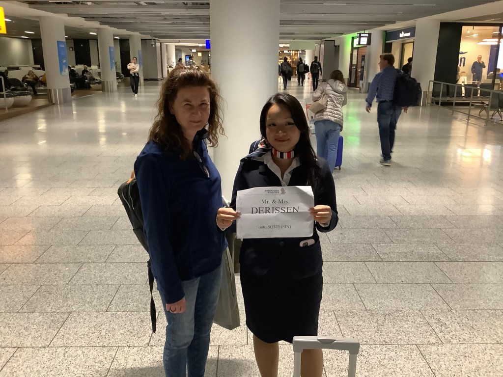 Kompliment Lufthansa, so kann es weitergehen. Als wir dann pünktlich in Frankfurt landeten, gab es gleich zwei Überraschungen. Erstens hatte der Pilot die 20 minütige Verspätung aufgeholt und zweitens erwartete uns ein First Class Service direkt am Gate. Da wir ja eigentlich in der ersten Klasse mit Singapur Air unterwegs sind, versteht es sich für diese 5 Sterne Airline auch, dass sie ihre Gäste entsprechend bedient und umsorgt. Da kann sich die Lufthansa etwas von abschneiden, aber sie ist halt nur mit 4 Sternen bewertet.