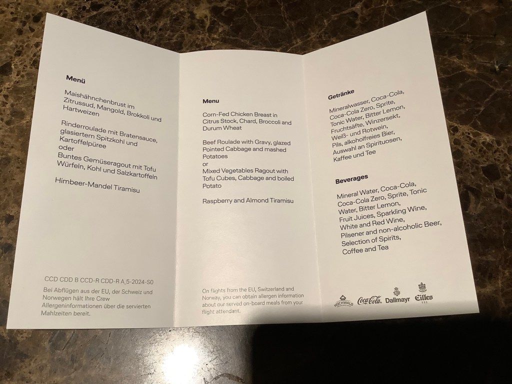 Die Getränkekarte war zwar nicht so endlos wie bei der Lufthansa, dafür aber recht exklusive: