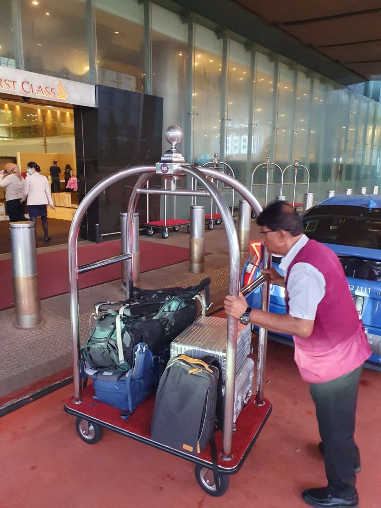 Nach der Landung, machten wir dann einen kleinen Fehler. Eigentlich wollten wir noch in die First Class Lounge aber in der Hektik waren wir schneller durch die Einreise durch als wir schauen konnten und so gab es leider keinen Weg zurück. Auf diese Lounge müssen wir somit noch bis zur Ausreise warten. Was ich hier nun mit einem paar Sätzen beschrieben habe ist übrigens echt super. Bereits max. 3 Tage vor dem Abflug konnte ich in der „MyICA App“ unsere Einreise ankündigen und mit dem Reisepass verknüpfen. Die Einreiseprozedur bestand dann nur noch darin, an einem Automaten den Reisepass zu scannen und innerhalb von 1 Minute hatte ich mein Visum auf dem Handy und konnte passieren. Das war die Einreise nach SIN. In der Ankunftshalle habe ich mir dann noch am GAA der ICBC Bank mit meiner Sparkassenkarte (ohne extra Gebühren) Bargeld besorgt und gleich in der Nähe an einem Tourischalter 2 SIM Karten für insgesamt 36SG$ gekauft. Schnell die Karten im Handy gewechselt und nach 2 Minuten waren wir online. Eigentlich hätte ich nun mit der „Grab App“ direkt ein Taxi ordern können, da ich aber zu diesem Zeitpunkt noch nicht angemeldet war, sind wir dann zum nächsten Taxistand und haben für 35SG$ ein Taxi zur Orchard Road geordert (mit Grab hätte es ca. 25 gekostet).
