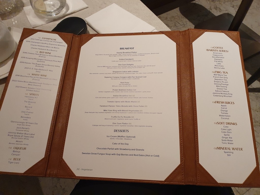 Die Speisekare überfordert, wenn man nicht vorher „Book the Cook“ geordert hat und wie wir bereits vorher die Hauptgänge ausgewählt hatten.