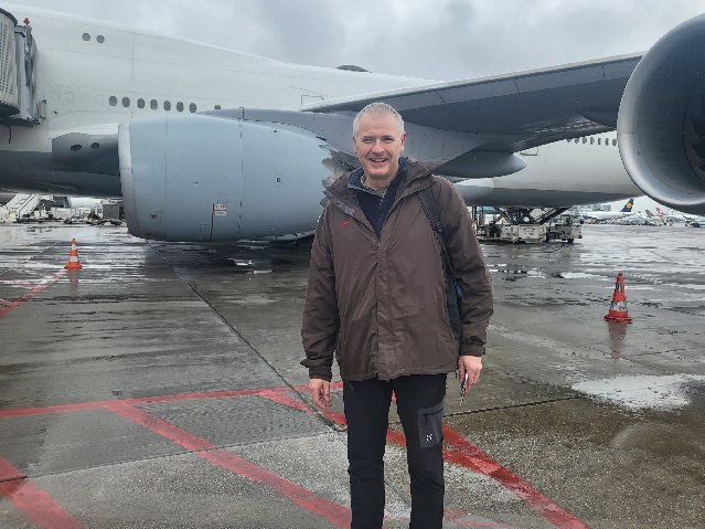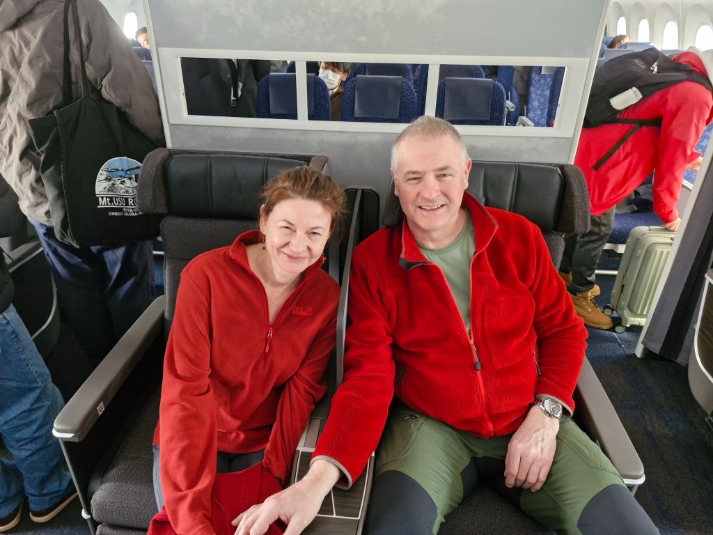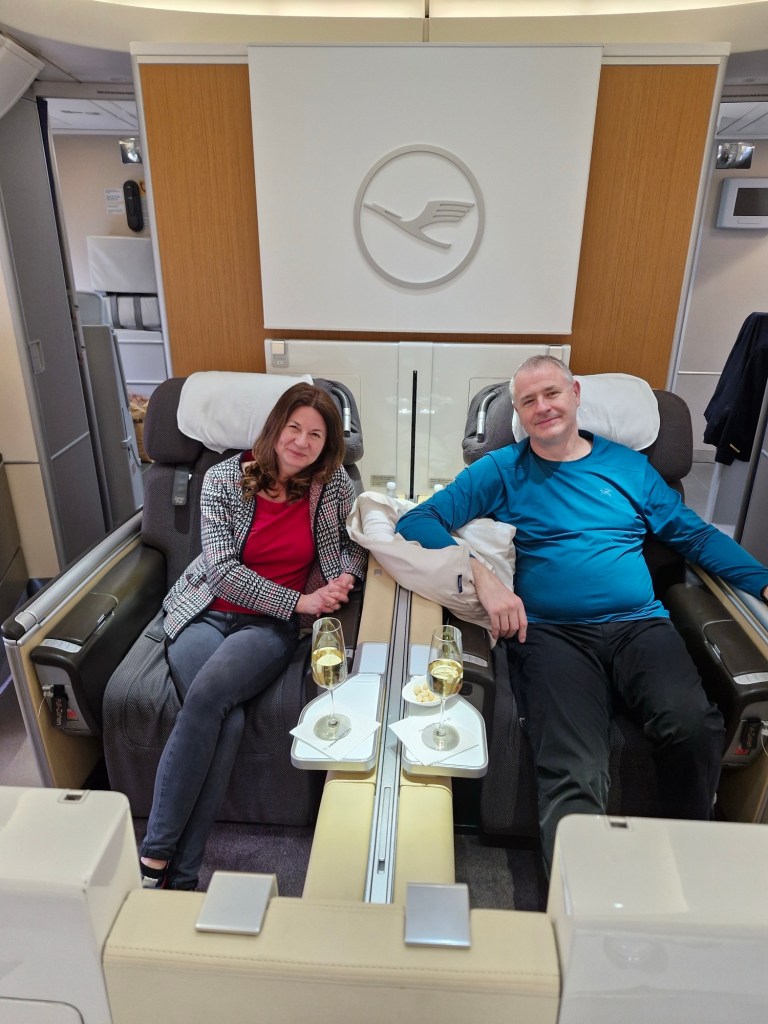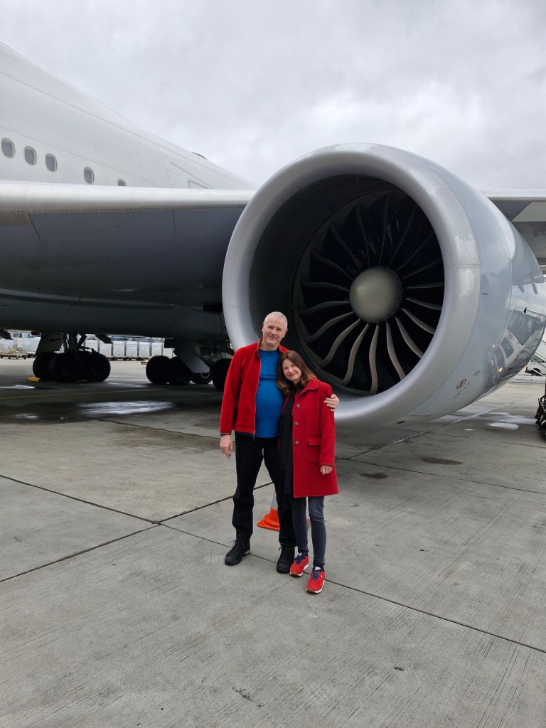 So kamen wir zeitig bei unserer Boing 747-800 an und es war noch genug Zeit für ein schönes Bild mit meiner Frau.