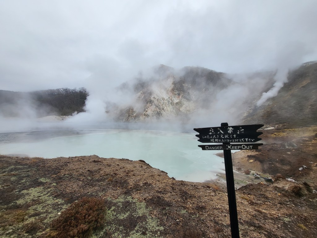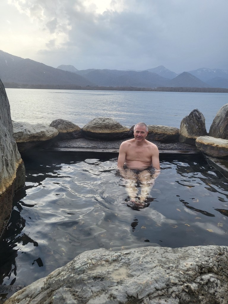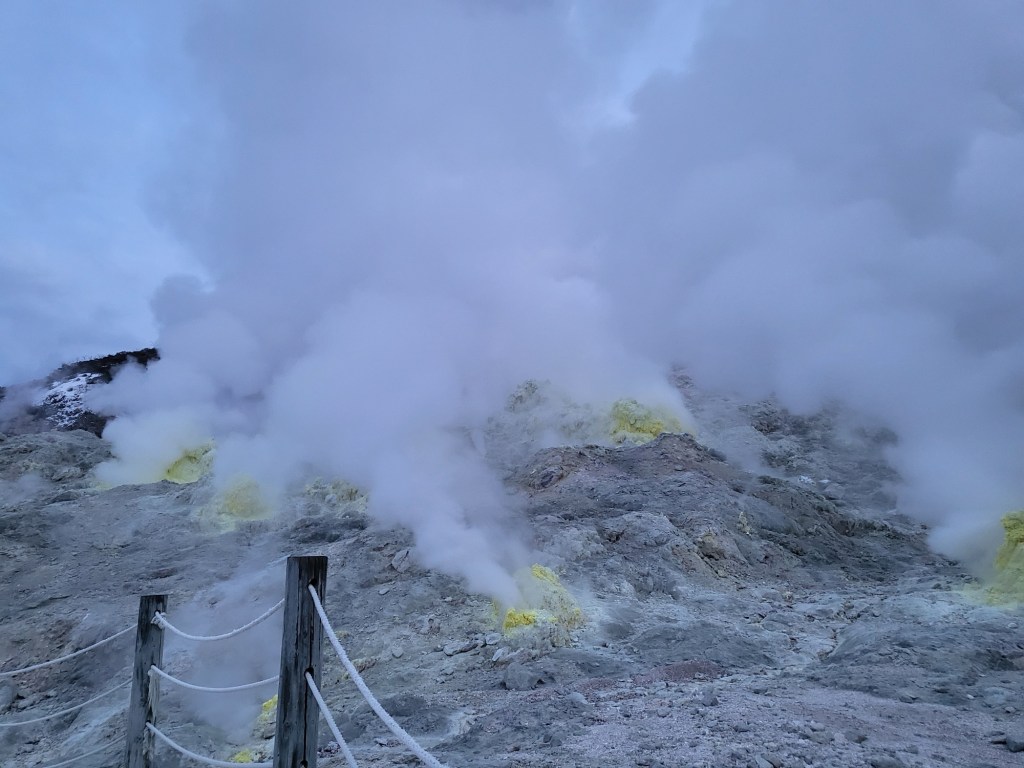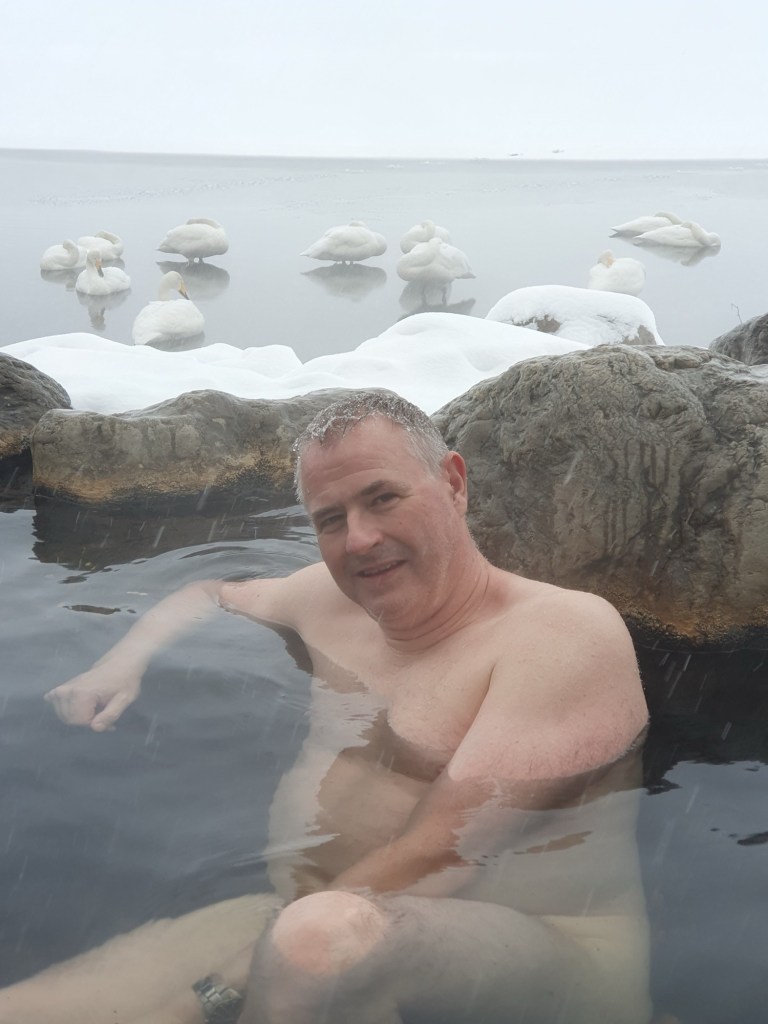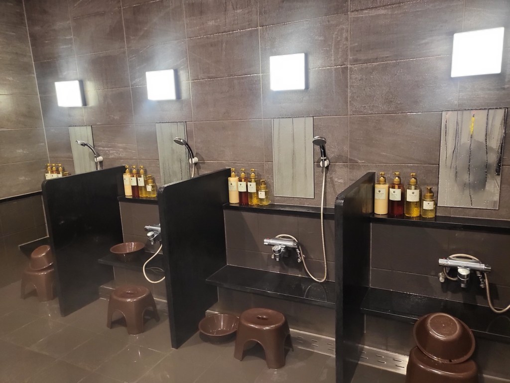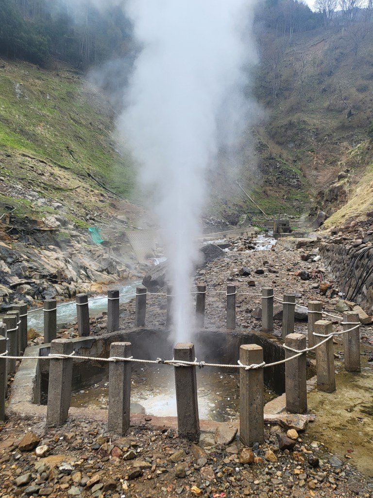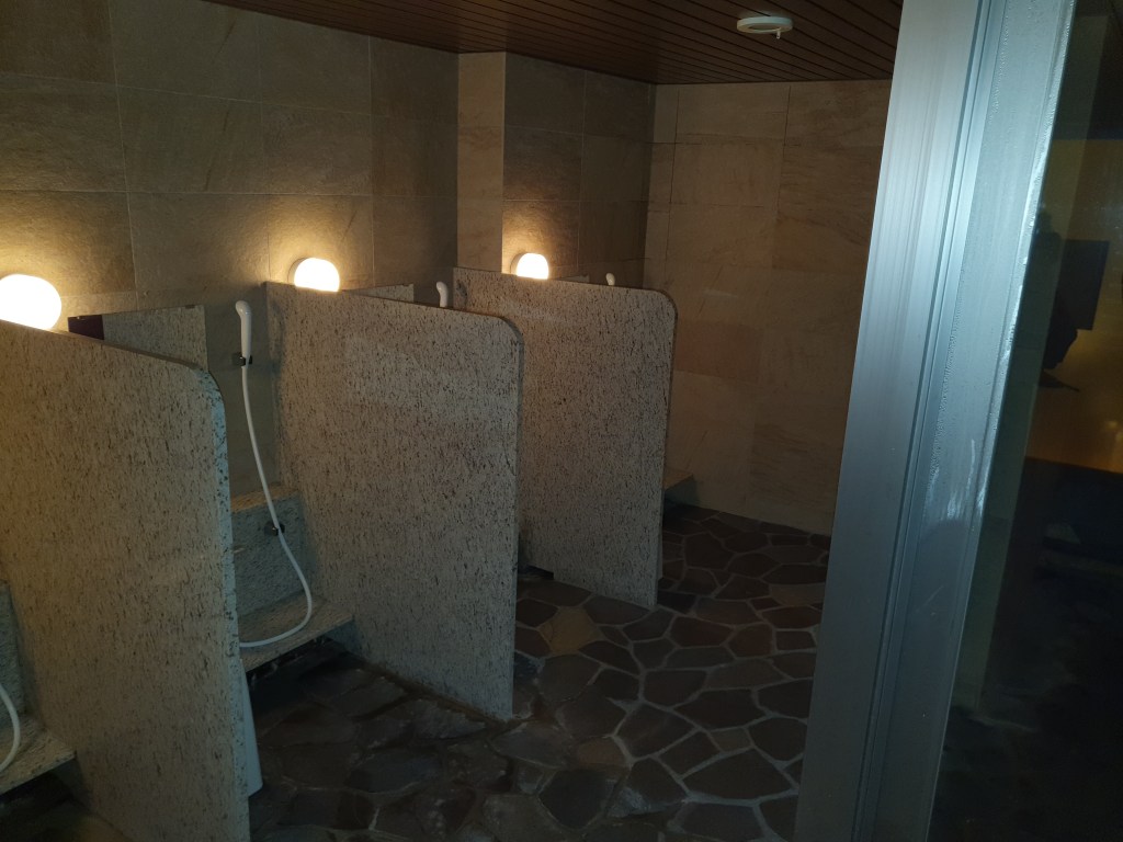 Reden wir nun über die 13 Onsen. Über einen kleinen Vorraum betritt man das Badehaus, entledigt sie der Schuhe und im eigentlichen Onsen legt man sämtliche Kleidung ab. Kein Schmuck, Uhren oder Smartphone sind erlaubt. So im Adamskostüm nimmt man sich eine kleine Plastikschüssel, schöpft etwas Wasser aus dem Bad und setzt sich auf dem Boden neben der Wasserfläche. So hocken da auch über 80 jährige japanische Opas und Omas. Nun reinigt man sich gründlich und begießt sich mit dem Thermalwasser. Hierbei ist Vorsicht angeraten, das Wasser ist mitunter 75 (kein Scherz) Grad warm. Wer nun will und kann darf es dann einmal mit dem kleinen Zeh versuchen oder todesmutig ins Wasser steigen. Ich schaffte heute 10 von 10 Onsen und sah zeitweise wie ein Hummer nach seinem Rendezvous mit dem Kochtopf aus. (Nachrichtlich, das soll gesund sein und zumindest meine Haut fühlt sich heute Abend unwahrscheinlich samtig an).
