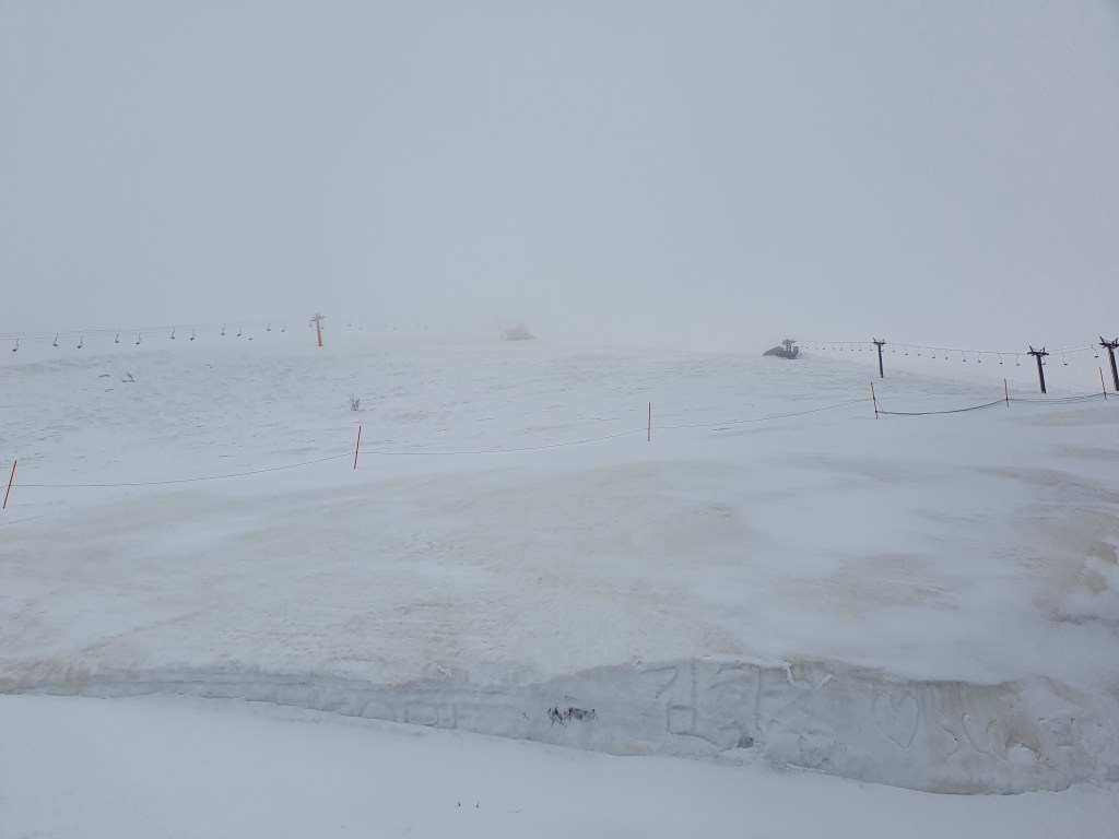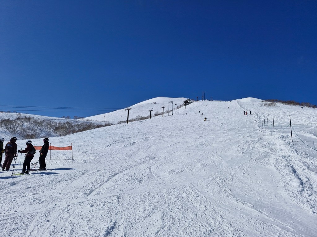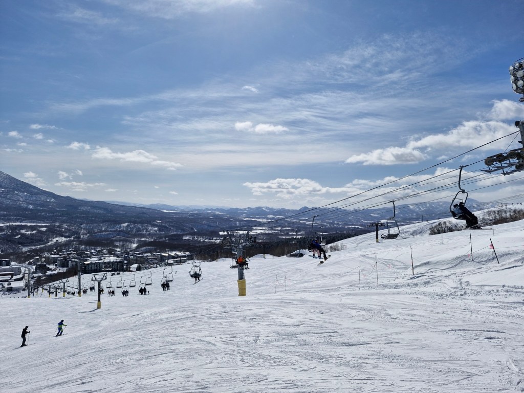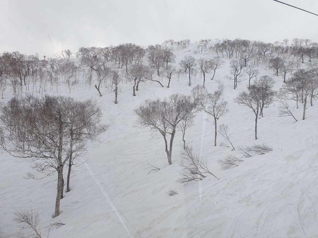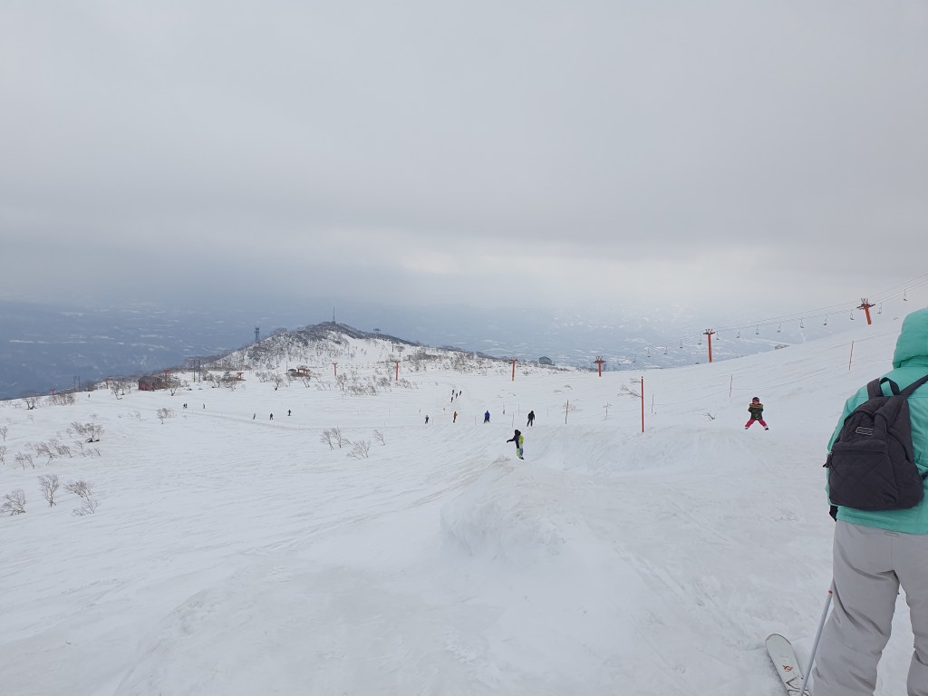 Dani mußte nun auf Ihren Skilehrer warten und ich hatte 4 Stunden für mich. Nach einigen Runden auf dem Haushügel ging es dann in mehreren Etappen hinauf auf den Mt. Kenashi und dort auf 1650 Metern Höhe schneite es sogar etwas. Hier oben waren die Pisten fantastisch und ich konnte trotz meines Handicaps am rechten Bein, die ein oder andere Runde genußvoll drehen.