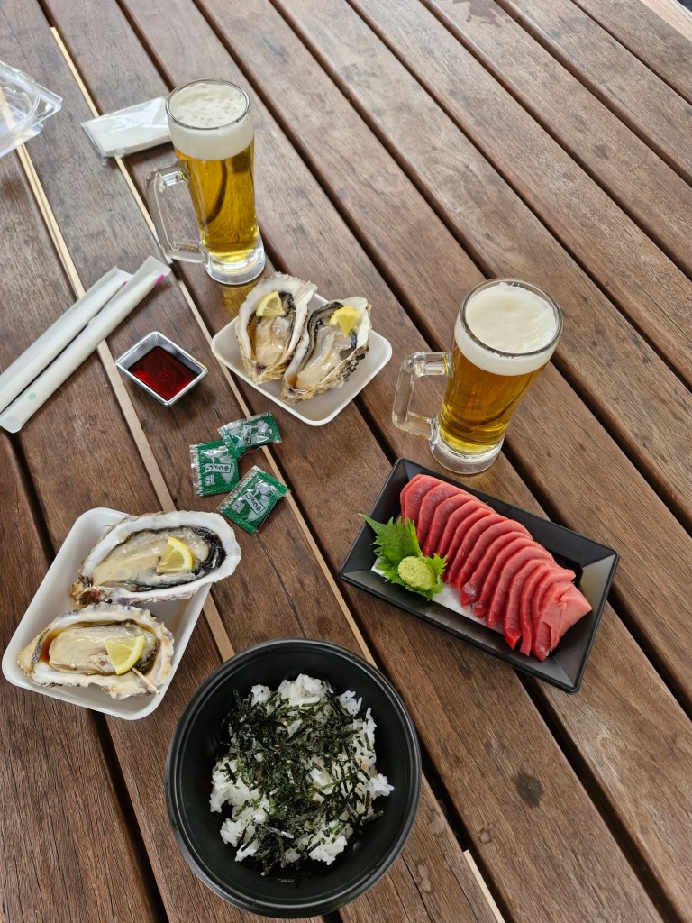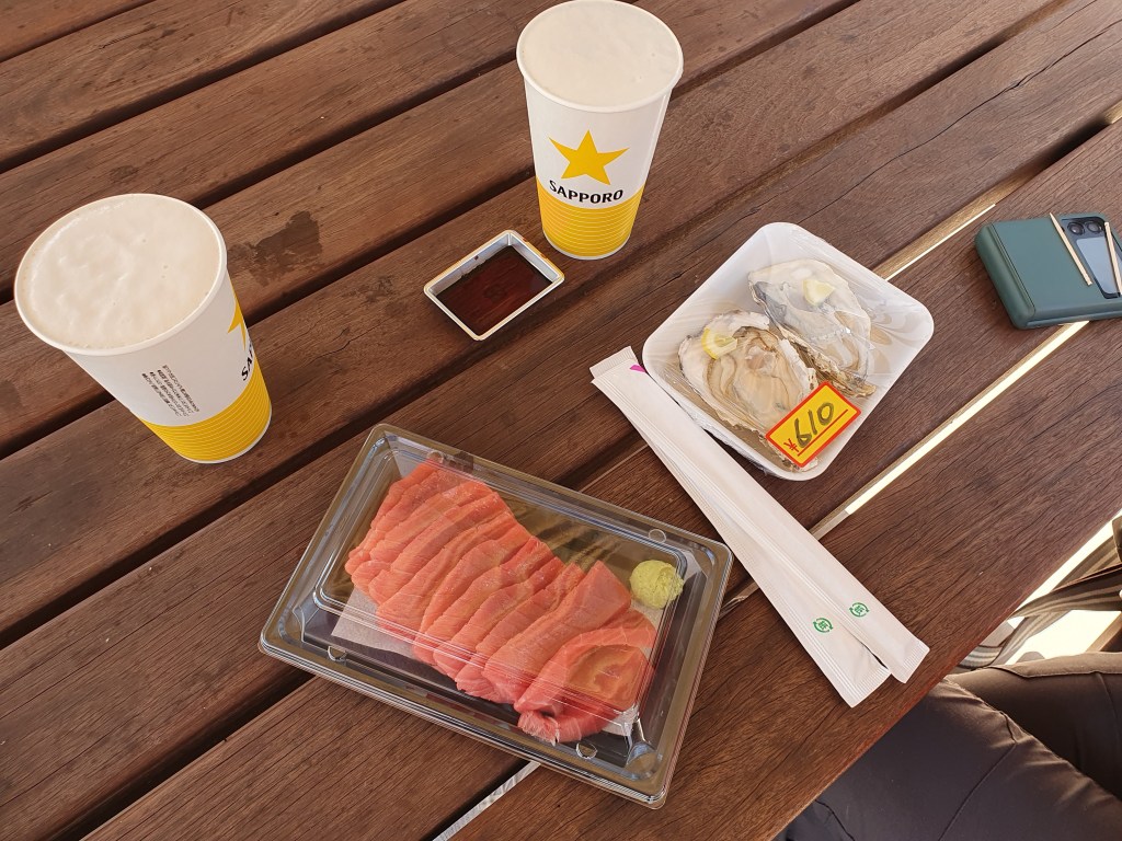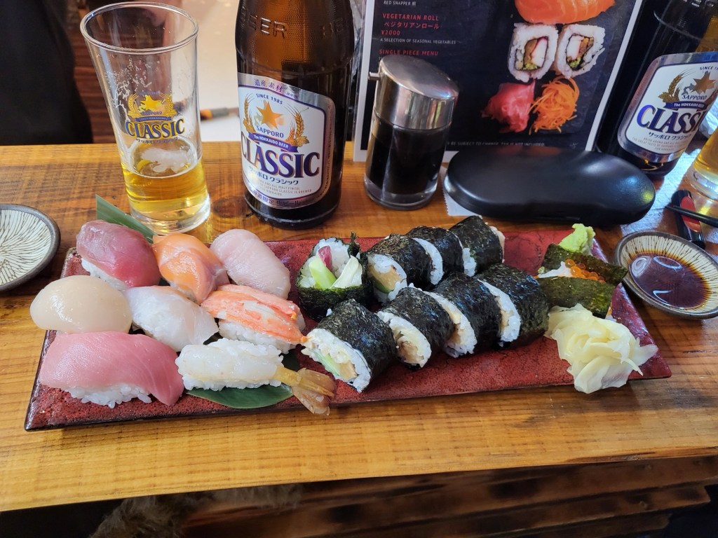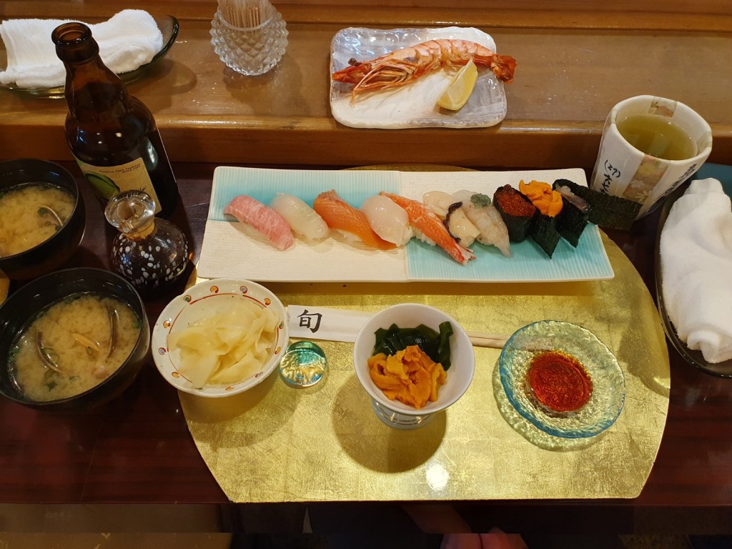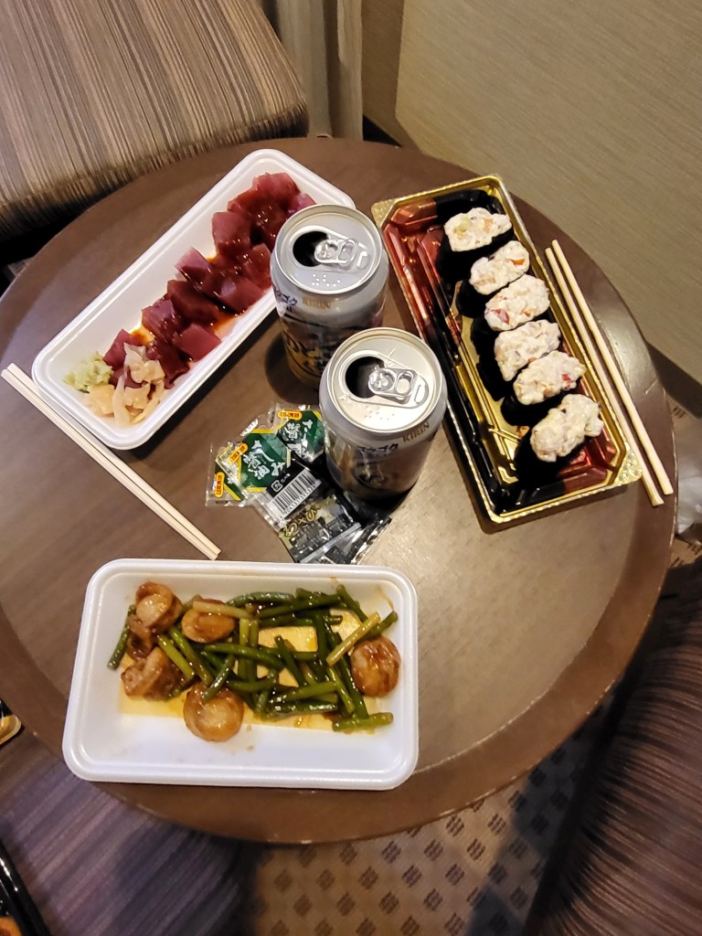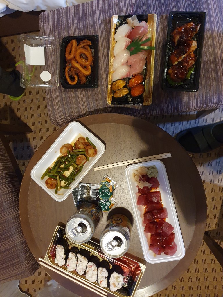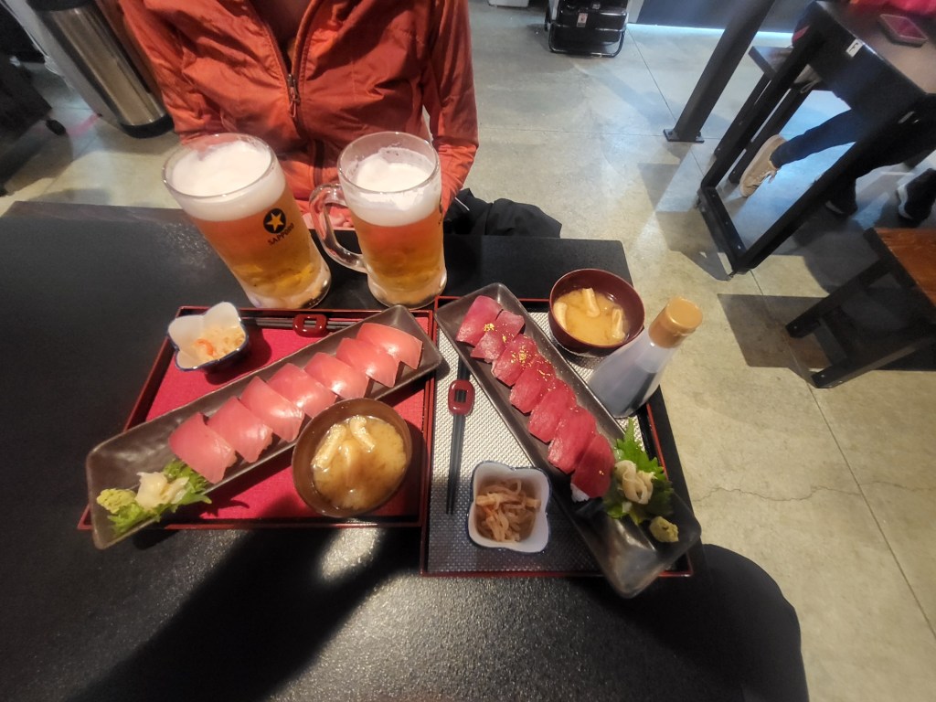 Danach braucht der Körper zuerst einmal etwas Festbrennstoff. Andere sagen hierzu Essen. Wir landeten beim Inder, besorgten uns Sushi aus dem Supermarkt für das Hotel und dinierten in einer kleinen Izakaya und heute in einer kleinen Sushi Bar. Der Sushi Meister war top und der Koch im Izakaya unbeschreiblich. Wir lieben japanisches Essen, nicht scharf aber aromatisch, absolute Spitzenklasse.
