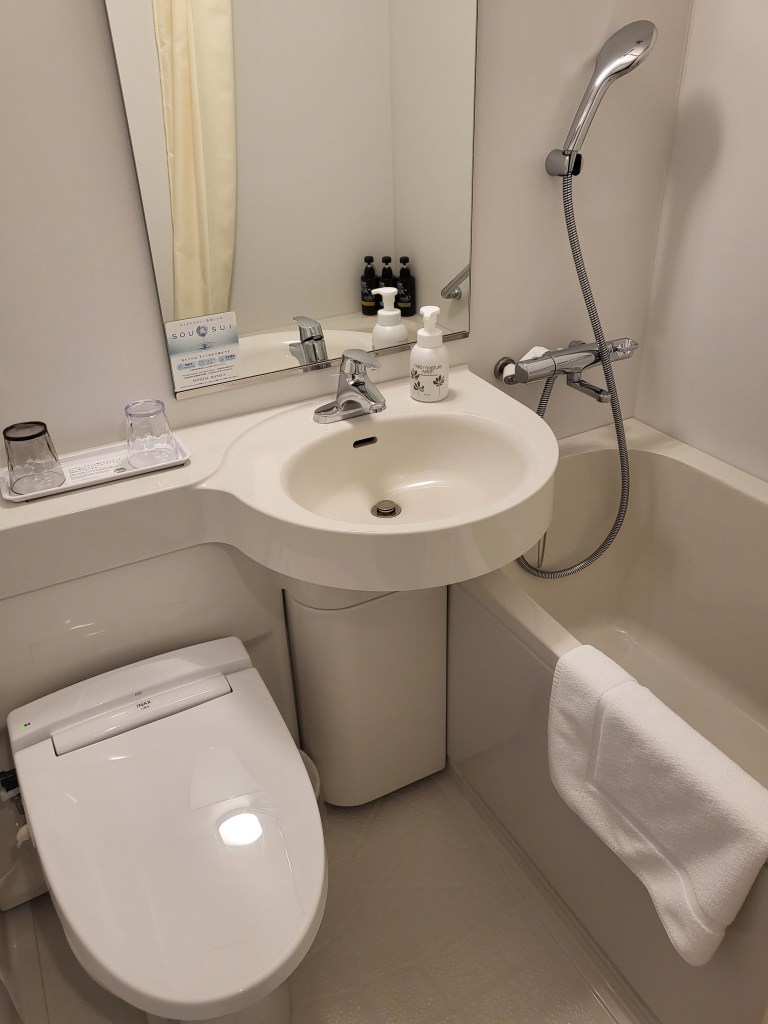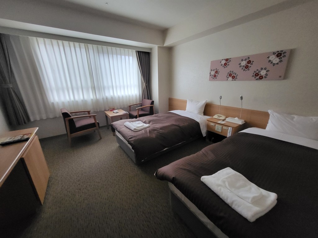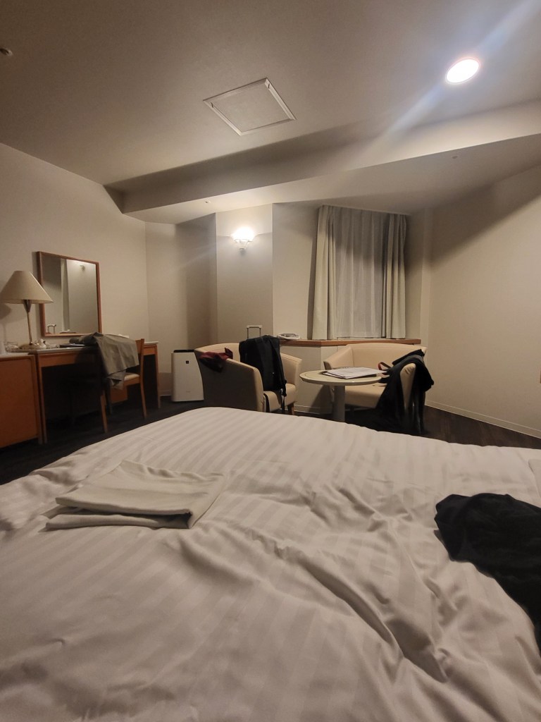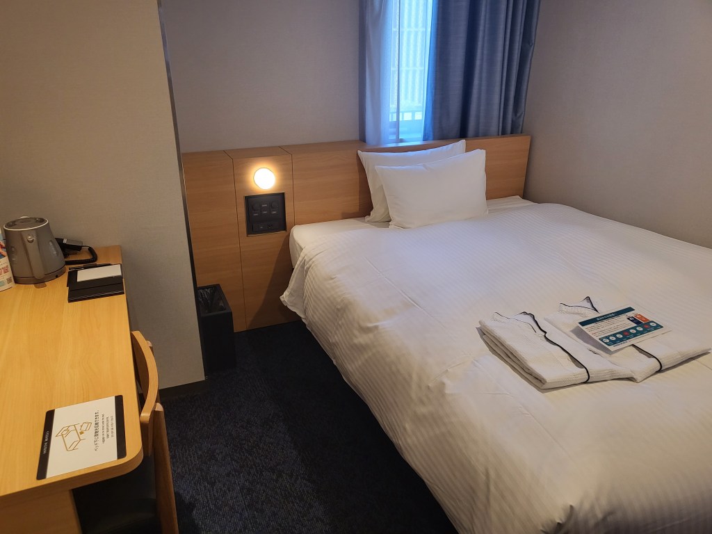 Die preiswerten JR Hotels gibt es im ganzen Land und sie liegen günstig in der Nähe der Bahnhöfe. Wir hatten 2 Nächte für unter 90€ inkl. Frühstück über booking.com gebucht. Das Zimmer ist nicht riesig, aber für uns reicht es.