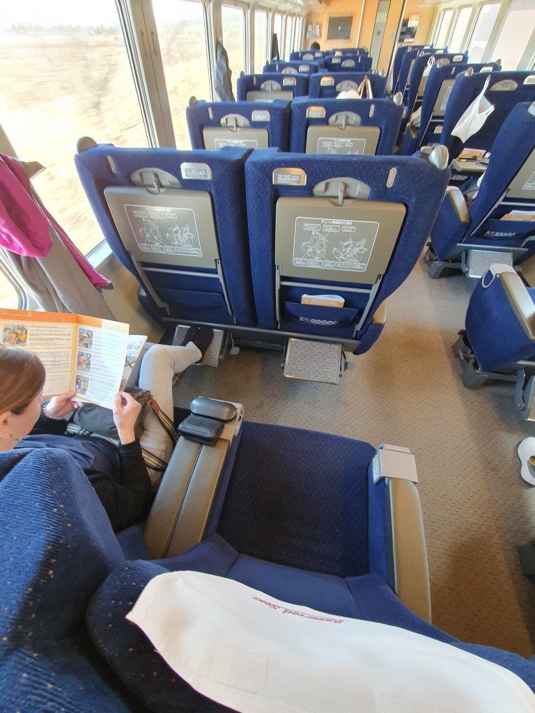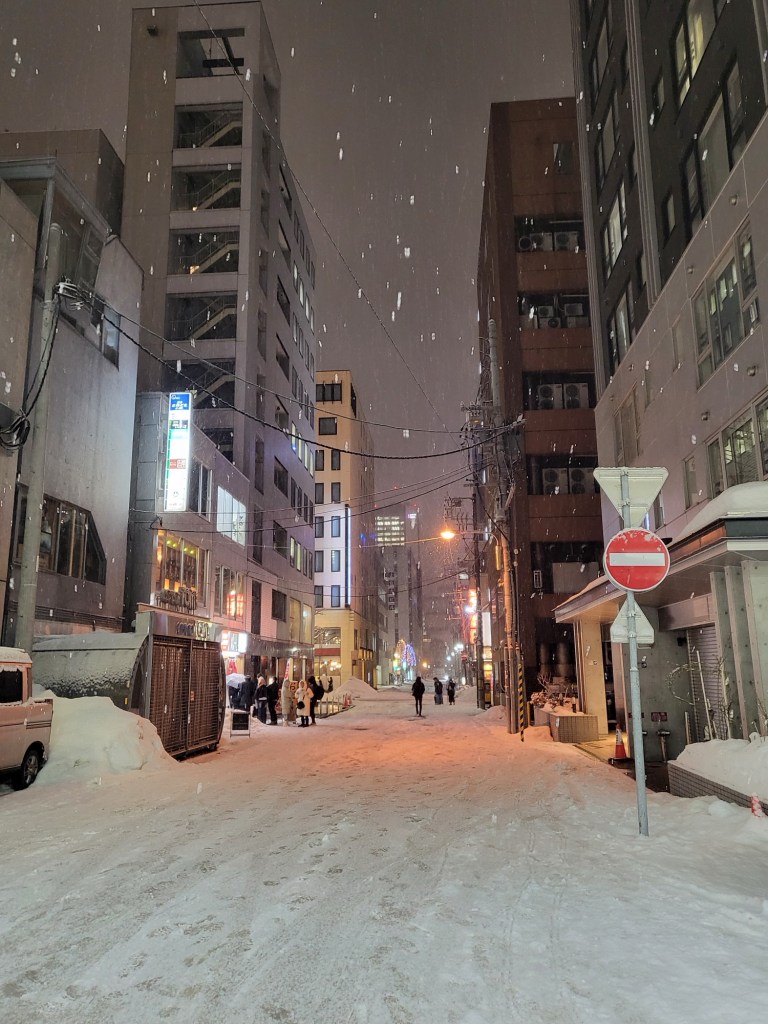 Ein Blick aus dem Fenster verhieß nichts Gutes. Bereits am frühen Morgen schneite es kräftig in Sapporo. So galt mein erster Blick der ANA App und ich war zumindest temporär erleichtert, dass unser Flug immer noch auf „go“ stand. So packten wir und es ging ab zum nahen Bahnhof. Dort angekommen rechnet der Kummer gewöhnte Deutsche mit ausgefallenen Zügen oder zumindest Verspätungen, zumal ein richtig heftiger Schneefall einsetzte. Aber was soll ich sagen, die Physik in Japan scheint eine andere zu sein, als in Deutschland. Hier gab es keine Hinweise auf verspätete oder ausfallende Zugverbindungen. So bestiegen wir pünktlich unsere Rapid Zugverbindung zum nahen Flughafen und nahmen unsere fest reservierten Plätze in einem Regionalzug ein, eine aus unserer Sicht sehr lohnenswerte Investition, da dieser Züge morgens und abends recht voll werden. So düsten wir pünktlich in den aufziehenden Schneesturm und je weiter wir uns dem Chitose Airport näherten, je stärker schneite es und je schlechter wurde meine Laune. Wann kommt denn nun endlich die Stornierung zum Flug?