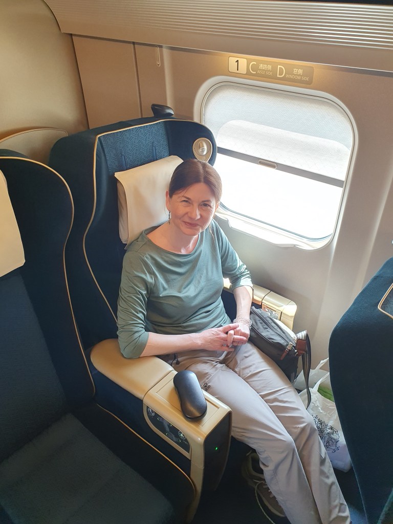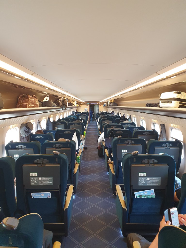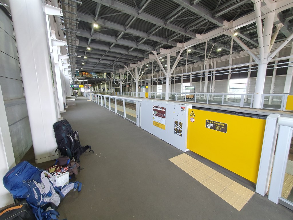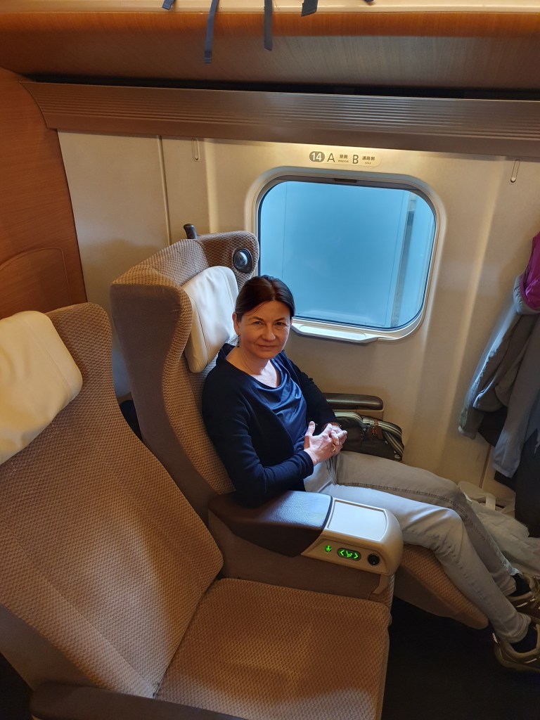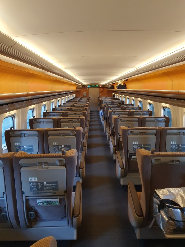 Aber nun zurück zu unserer ersten Shinkansen Fahrt in diesem Urlaub. Wie immer (bisher) war der Zug absolut pünktlich. Wir warten einige Minuten vorher bereits am Bahnsteig an den dafür vorgesehenen Wartepunkten und der Zug hielt dann auch genau dort. So stiegen wir in unser Green Class Abteil (1.Klasse), okkupierten unsere Sitze, verstauten unser Gepäck und genossen ein leckeres Sapporo Bierchen als der Zug Richtung Nagano abbrauste. Japanische Alpen, wir kommen.
