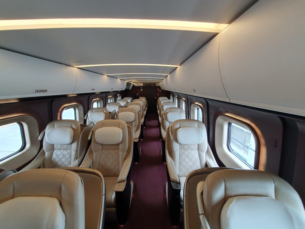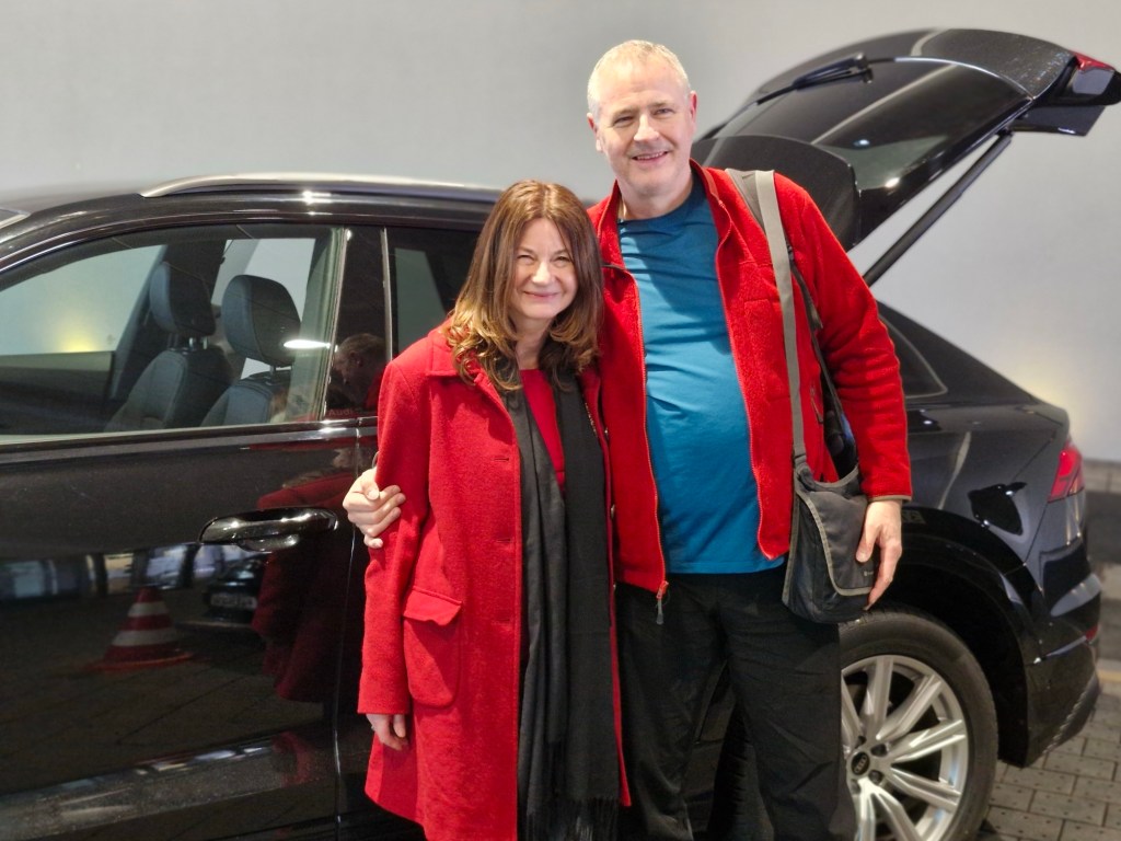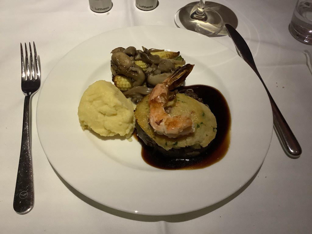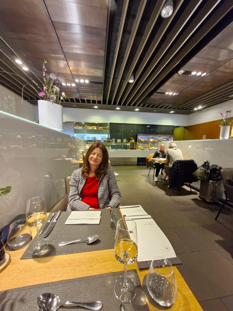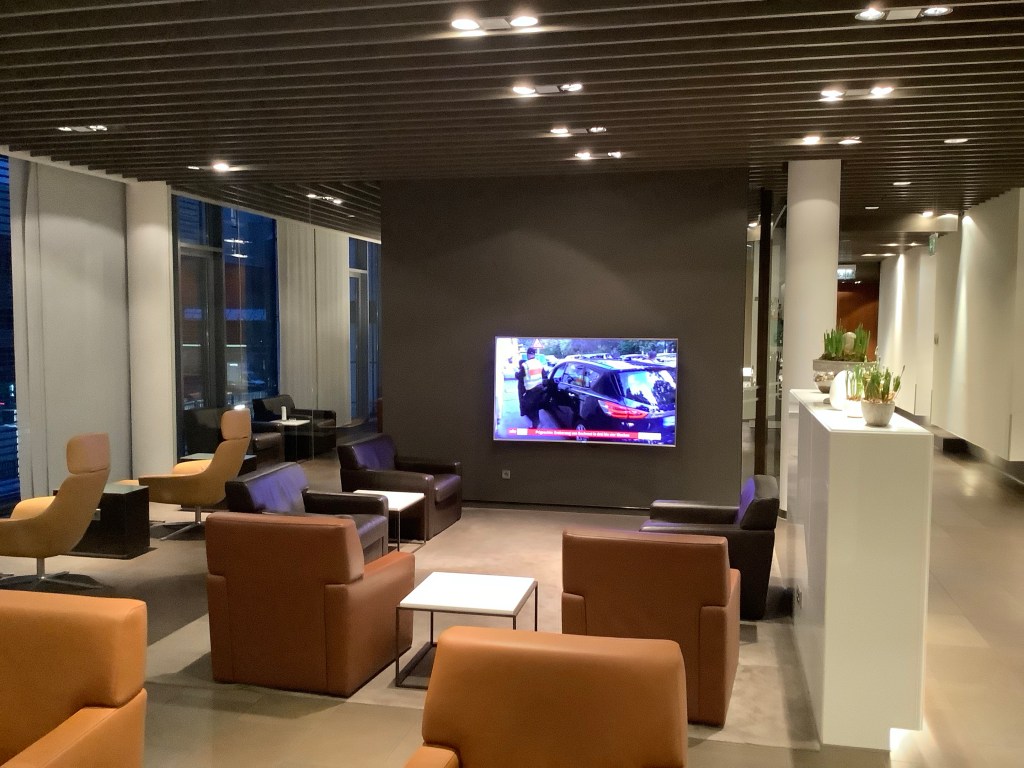 Einer der Vorteile dieses speziellen Terminals ist es, dass man den Zeitmesser nicht im Auge behalten muß. 15 Minuten vor Abflug steht ein netter Lufthansa Mitarbeiter neben einem und man wird via PKW, diesmal war es ein Audi Q8, direkt über das Landefeld zu seiner Maschine gebracht. Es versteht sich von allein, dass der Sicherheitscheck und die Passkontrolle exklusiv nur für uns waren 🙂 .