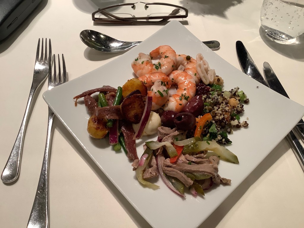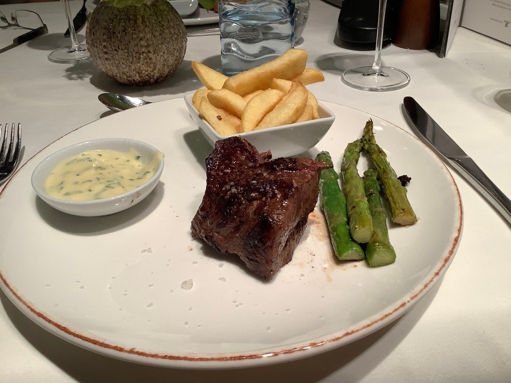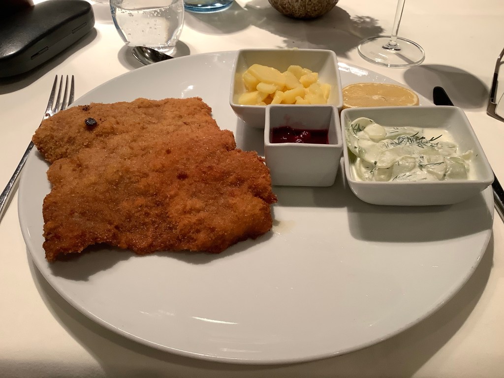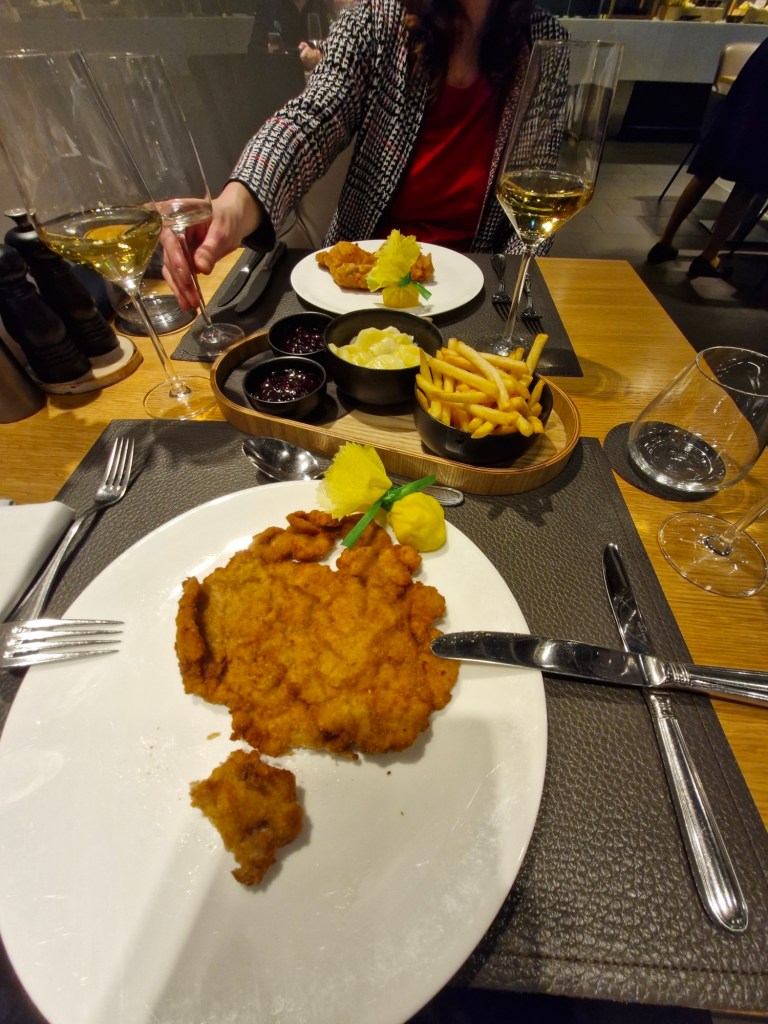 Hier erwarte uns eine weitere Ente (20 Jahre FCT Edition), lecker Essen (traditionell das Kalbsschnitzel), lecker Champus und zwei reichhaltige Cocktails.