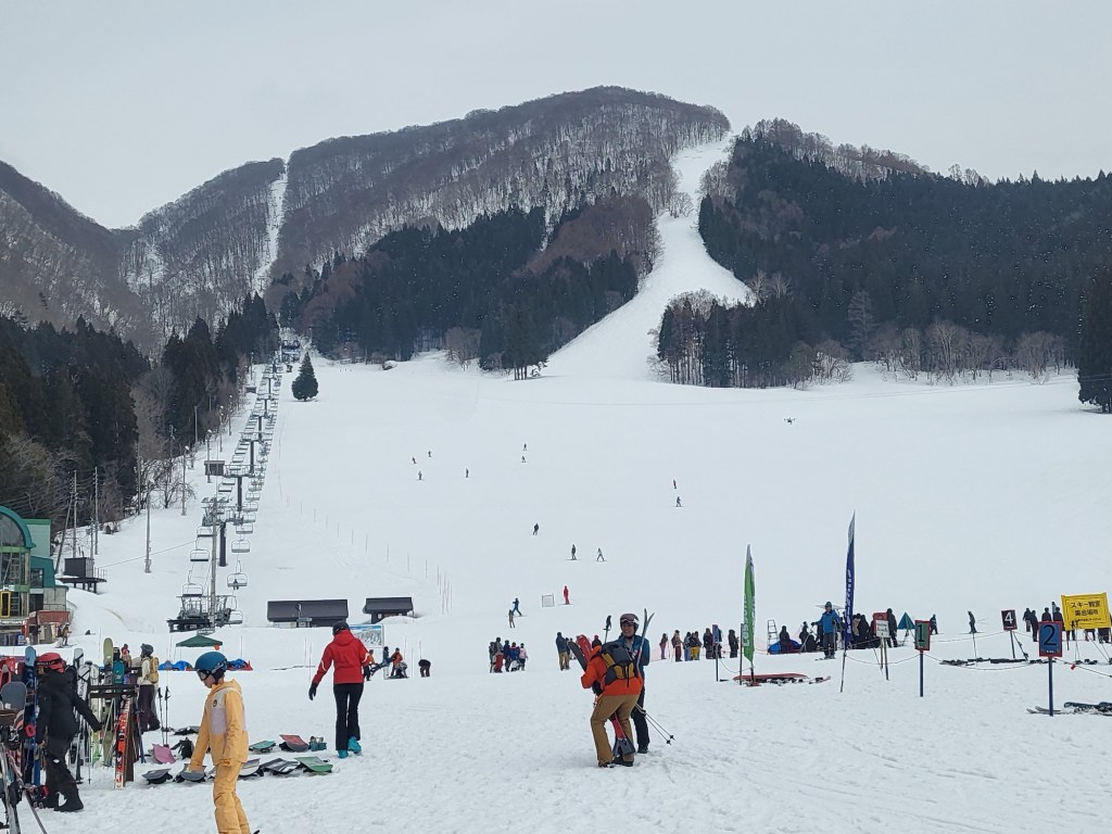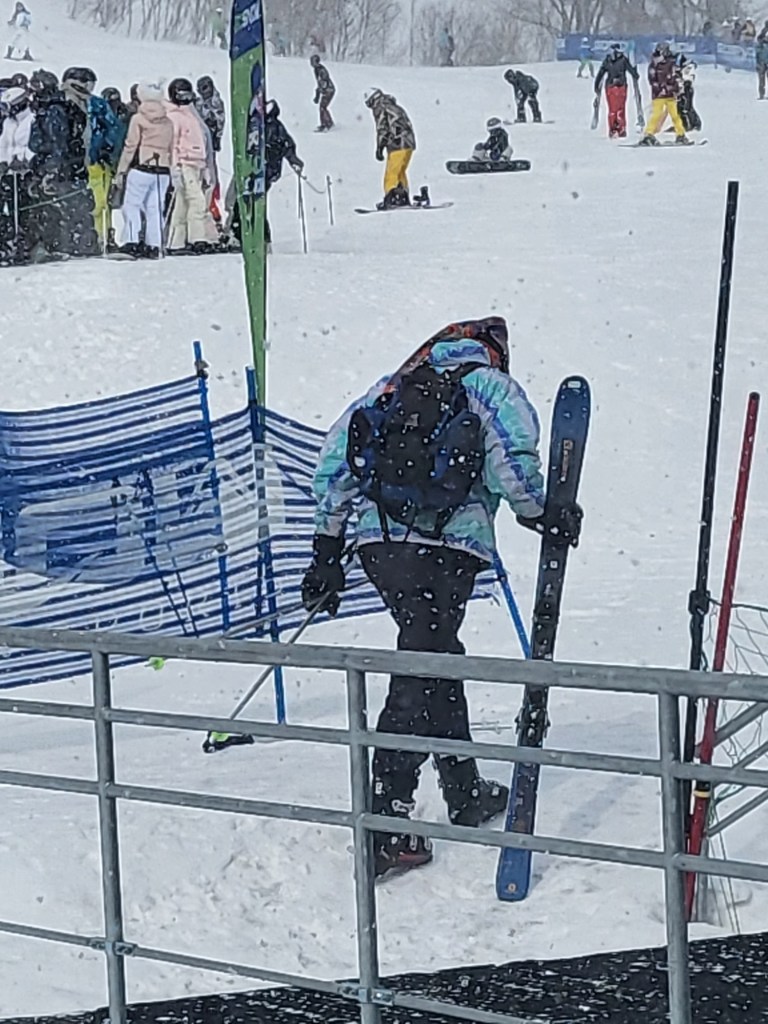 So stiefelten wir nach einem gemütlichen Vormittag gegen 11:00 zum Einstiegspunkt Richtung Hikage Ground Station (auf 660m). Dorthin beförderte uns ein „endloses“, überdachtes Förderband. Endlich angekommen besorgten wir uns die reservierte Skiausrüstung und orderten die 4 Stunden Pässe für den Nachmittag.