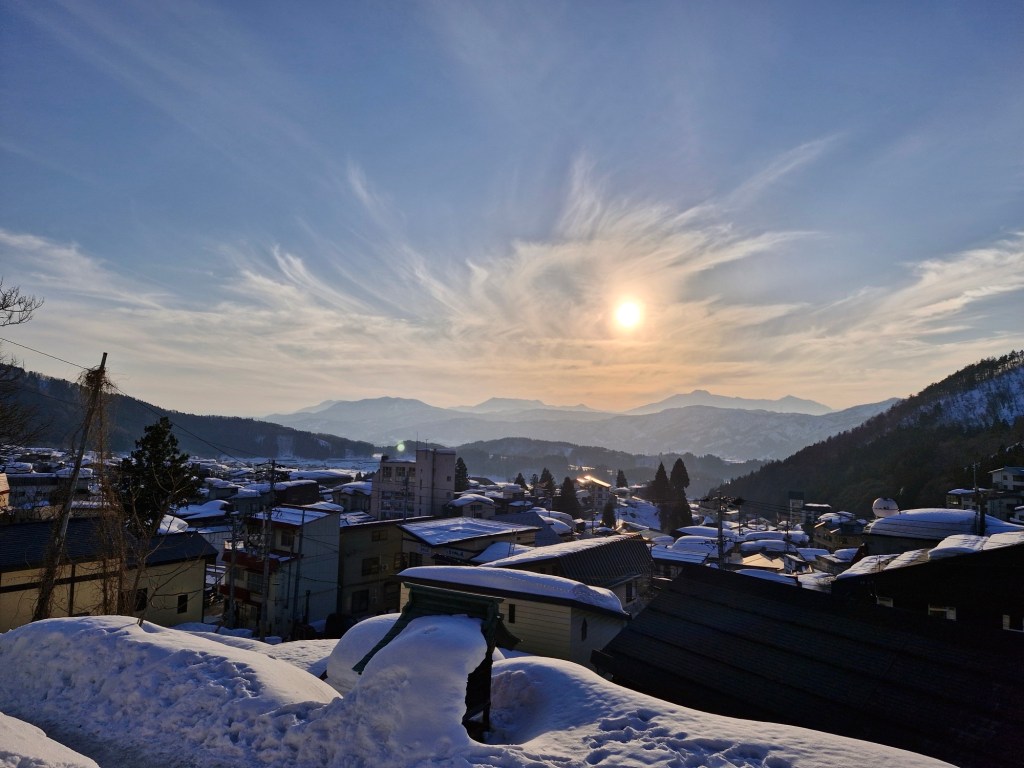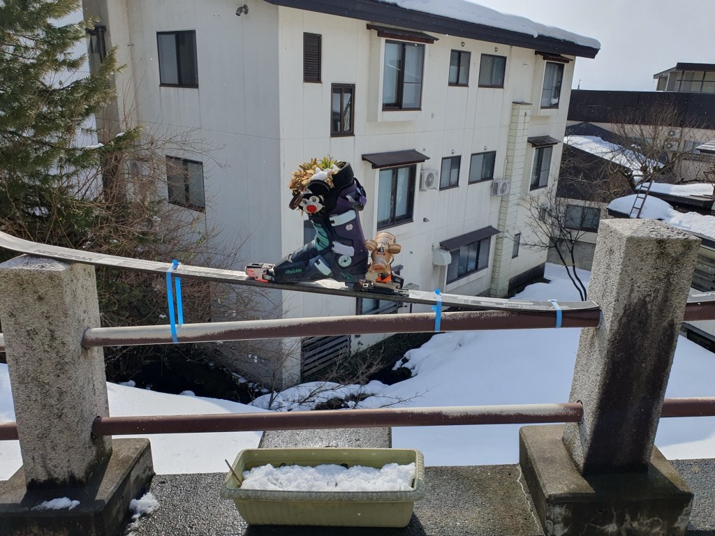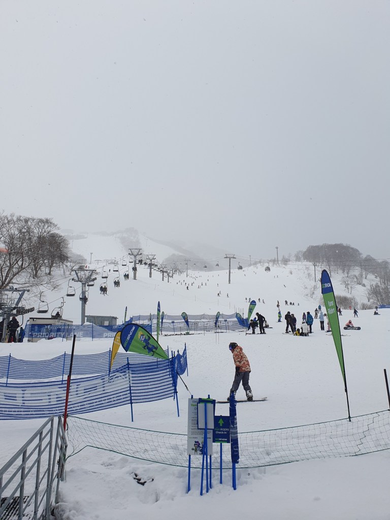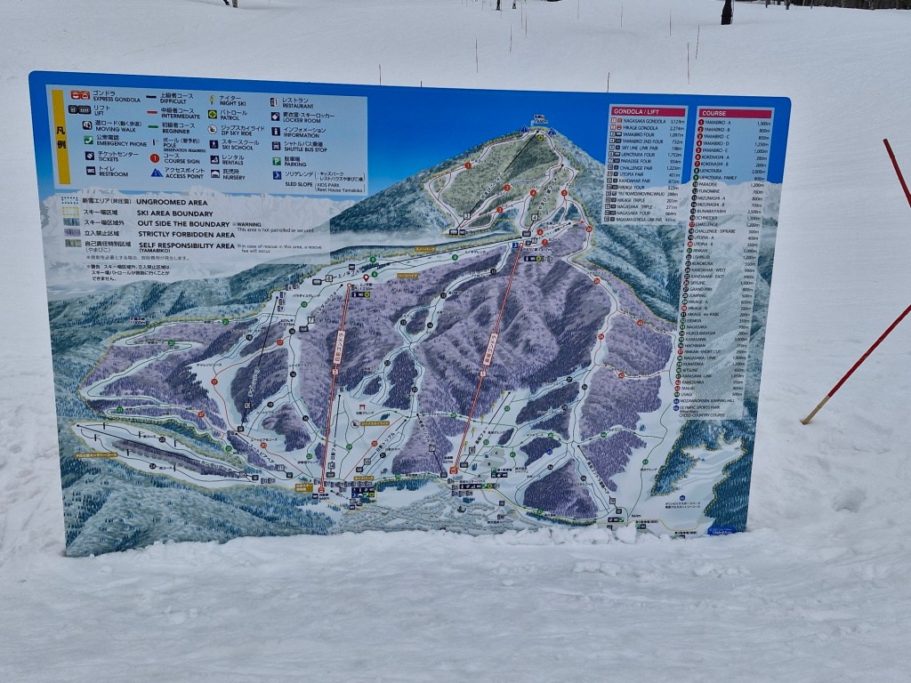 Wer nun denkt, für die nächsten Tage steht ausschließlich der Onsen Marathon auf dem Tagesplan, den muß ich enttäuschen. Die Plethi will es nochmals wissen. Wir enterten die Talstation und buchten zumindest für Morgen Skipass, Skiausrüstung und für meine bessere Hälfte einen Privatlehrer.
