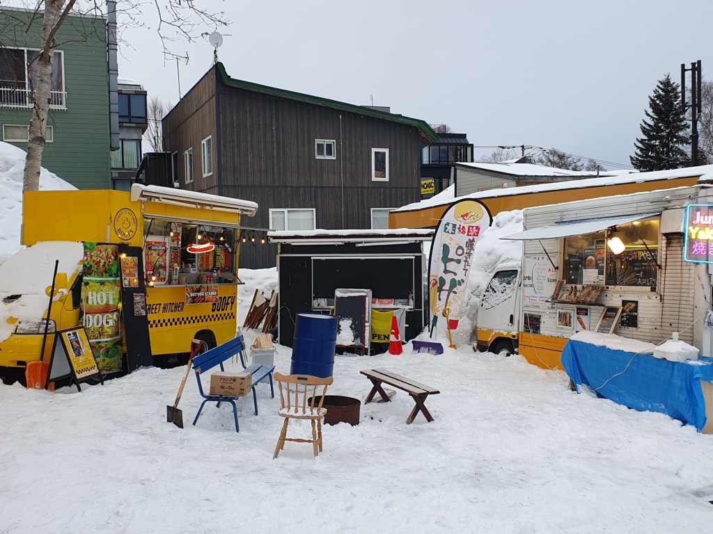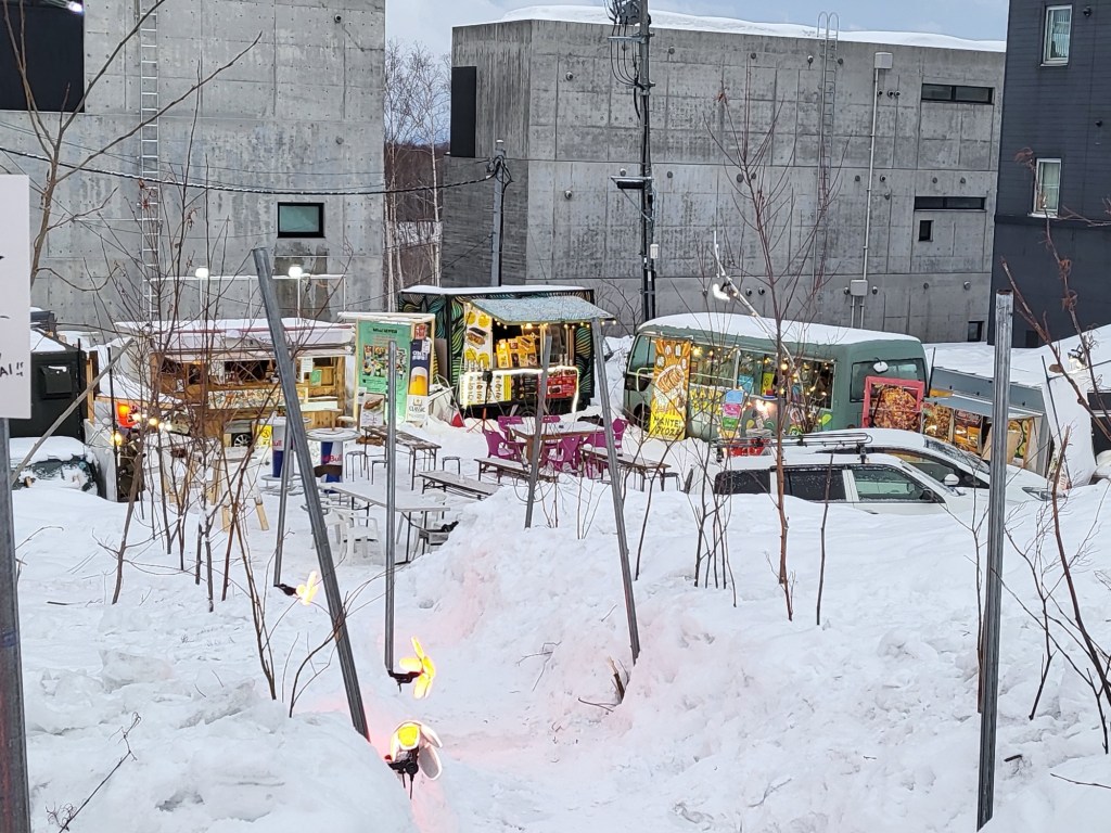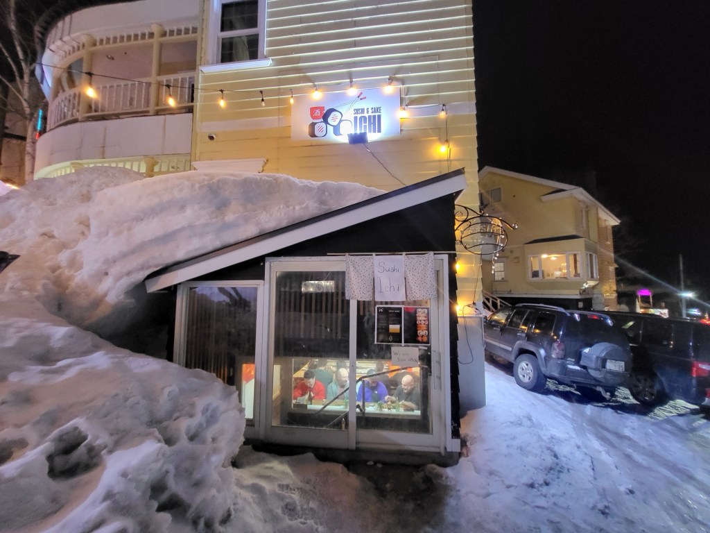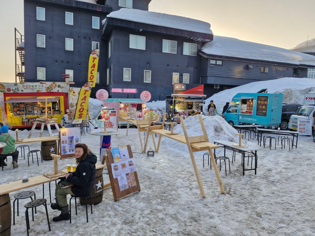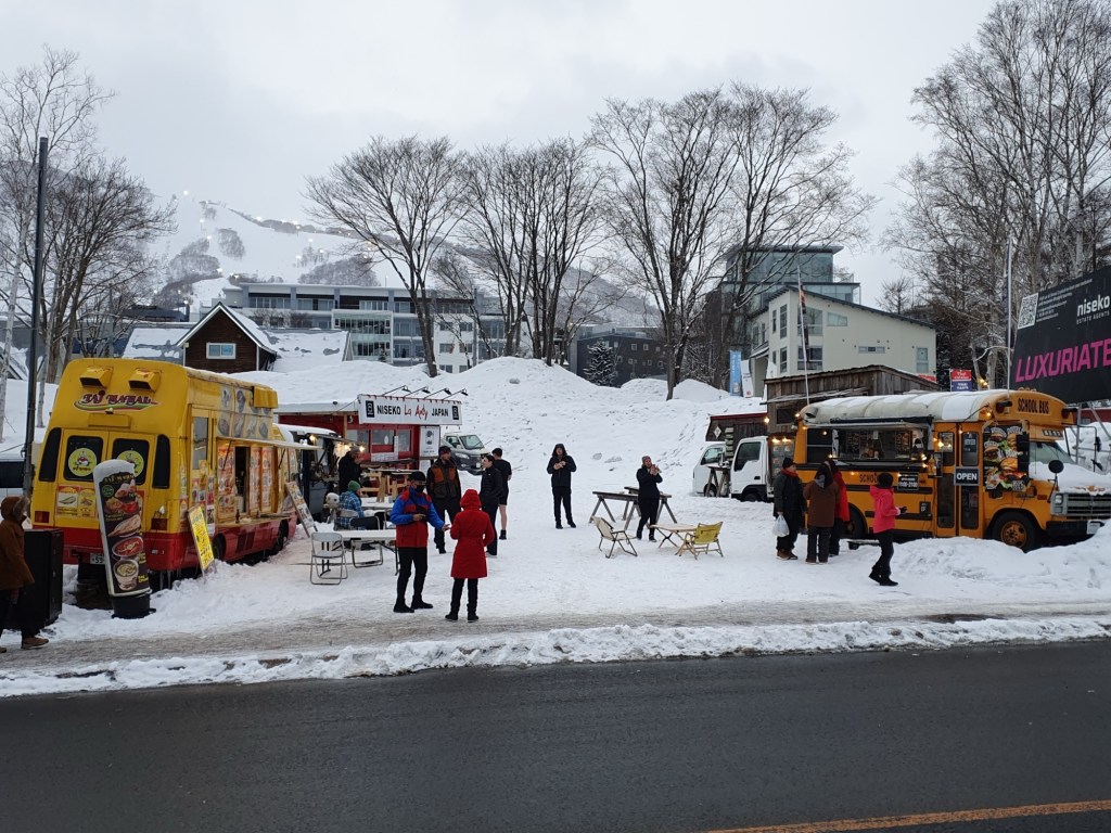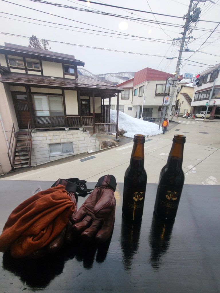 und nach dem Bezug, wanderten wir die 2 KM bis nach Niseko Down Town und genossen das frühlingshafte Wetter in einer tief verschneiten Umgebung, tranken das ein oder andere Bierchen und machten die üblichen Fotos bevor wir in einer kleinen Izakya Bar typisch japanisch speisten und im Hotel Onsen den Tag ausklingen ließen.