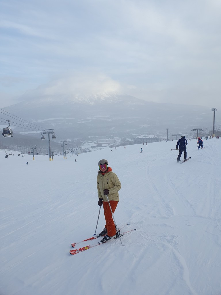 Nach einem guten Frühstück ging es dann um 8:30 mit dem Hotel Skibus zur Talstation. Unsere Skipässe (vom letzten Jahr) konnten wir bereits von zuhause aufladen und so mußten wir nur noch die vorbestellte Skiausrüstung abholen. Ich denke, gegen 9:30 waren wir dann auf der Piste und Dani drehte so manche Runde am „Giggijoch“ von Niseko Tokyu Grand Hirafu (näheres hierzu bei Google).