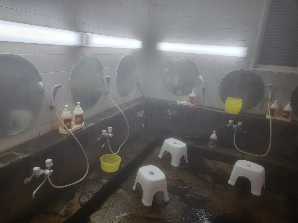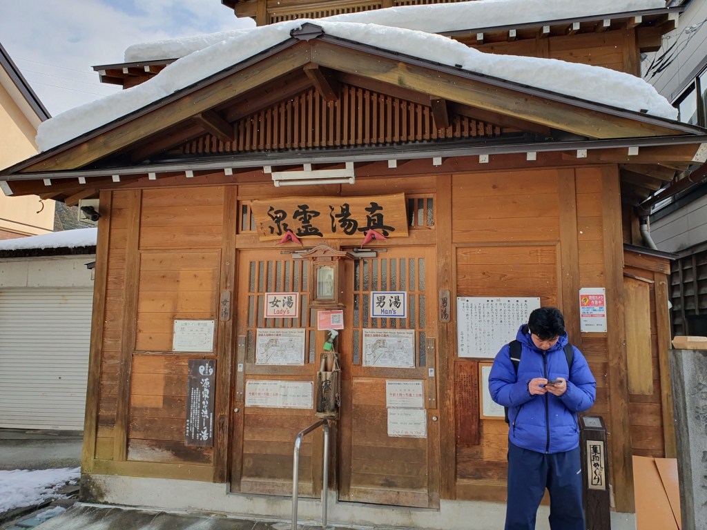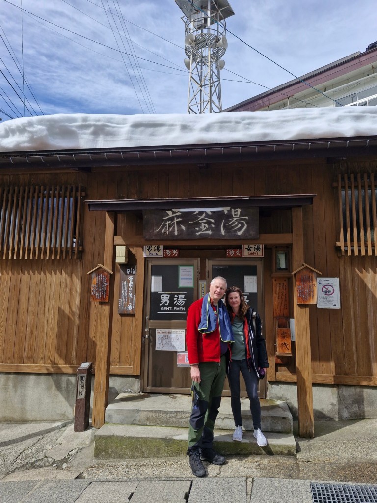 Aber was schreibe ich hier vom Handel, heute soll sich alles um die Wasserkultur der Japaner drehen. Wir sind schließlich in DEM Onsendorf Japans. Sicher es gibt viel mondänere Orte (siehe Bericht Japan 1), aber hier wimmelt es nicht vom Chinesen-Jet-Set und die Lokalitäten sind doch etwas rustikaler, halt einfacher. Man darf bei den folgenden Bildern nicht vergessen, dass dies Einrichtungen sind, die der Dorfgemeinschaft zum täglichen Gebrauch dienen und wir die „Fremden“, sie netterweise kostenlos (mit)-nutzen dürfen. Krethi liebt das Wort kostenlos.