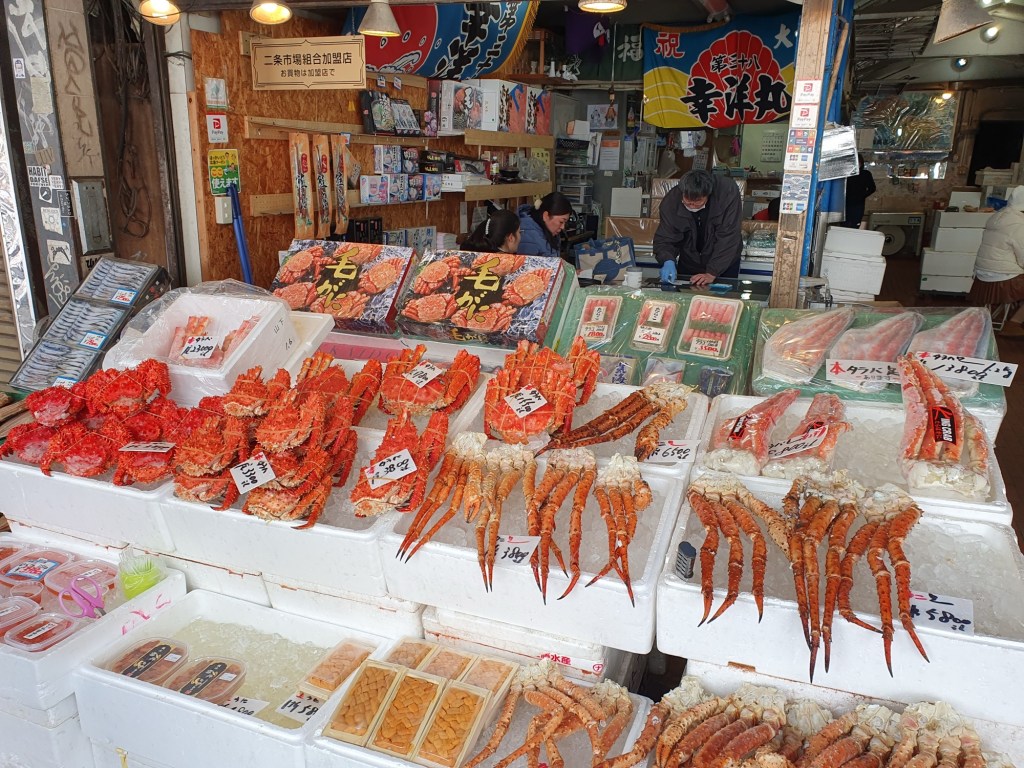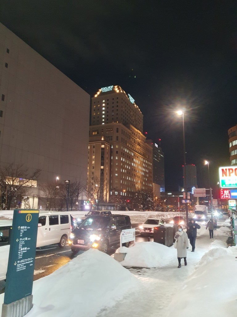 Bei bewölktem Wetter verließen wir Niseko. Ich hatte uns den Rücktransport per Bahn organisiert. Unser Hotel brachte uns und einige andere Gäste zum 8km entfernten Kutchan. Das ist ein kleiner Bahnhof dachte ich noch und dann sah ich die große Menschenmenge im Bahnhofsgebäude. Mein erster Gedankengang, natürlich DB geprägt war, da kommen wir heute nie weg. Aber wir sind halt in Japan. Innerhalb einer halben Stunde leerte sich die Wartehalle und wir fanden alle in einem wartenden Zug Platz. Ich muß mich erwähnen, dass wir pünktlich losfuhren? In Otaru mußten wir nach einer mehr als einstündigen Fahr den Zug wechseln und auch das klappte innerhalb von Minuten und selbstverständlich erreichten wir Sapporo Station mit null Verspätung. Unser Hotel gehört der japanischen Bahn (JR) und ist nur 5 Minuten vom Hauptbahnhof entfernt. Dank Google fanden wir auf Anhieb den Weg und so warteten wir gegen 14:30 vor dem Empfang zum einchecken. Da wir unser Zimmer erst ab 15:00 Uhr hatten, mußten wir auch bis dahin warten und konnten nicht früher unsere Räumlichkeiten begutachten. Auch das ist Japan!