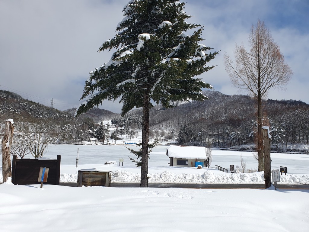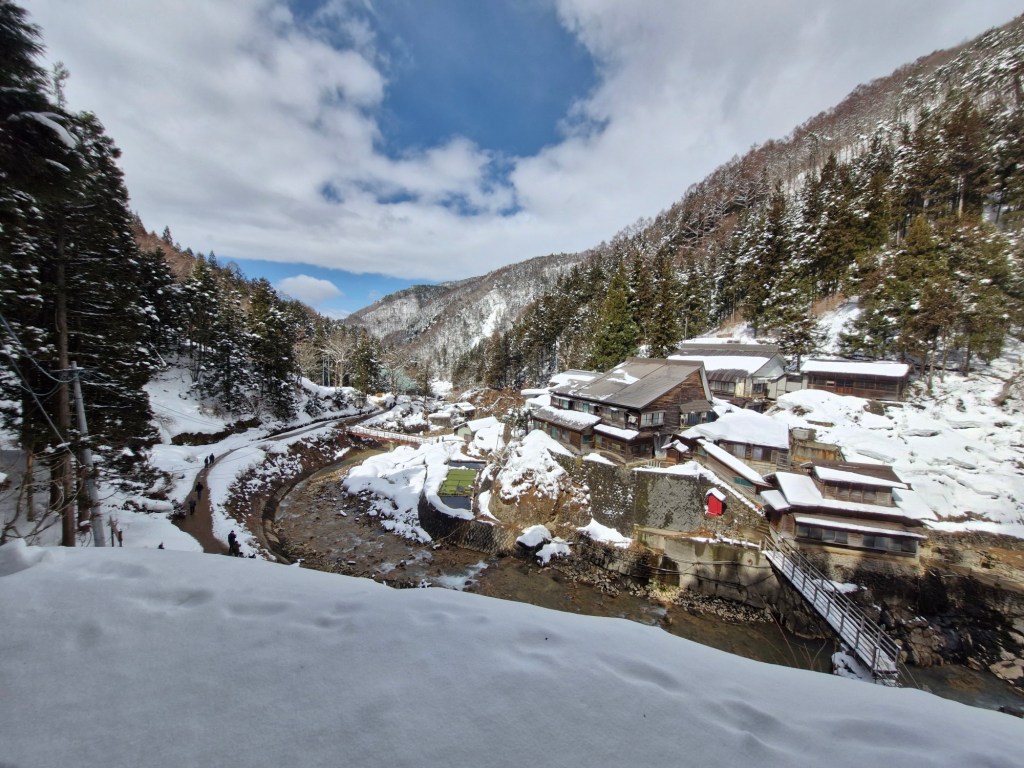 Morgens hieß es dann Abschied nehmen. Bei strahlendem Sonnenschein und über 15 Grad ging es weiter in das Herz der japanischen „Zentralalpen“. Unser Ziel war nur etwa 2 Autostunden entfernt. Auf dem Weg dorthin deckten wir uns ein mit reichlich Apfelsaft, wir sind schließlich auch in dem Anbaugebiet Japans. Pünktlich zum Check-Inn oder besser gesagt 14:00 Uhr erreichten wir dann unser Vorjahreshotel, das Hatoguruma Kawabata und fanden in diesem Ryokan alles so vor, wie wir es in Erinnerung hatten.