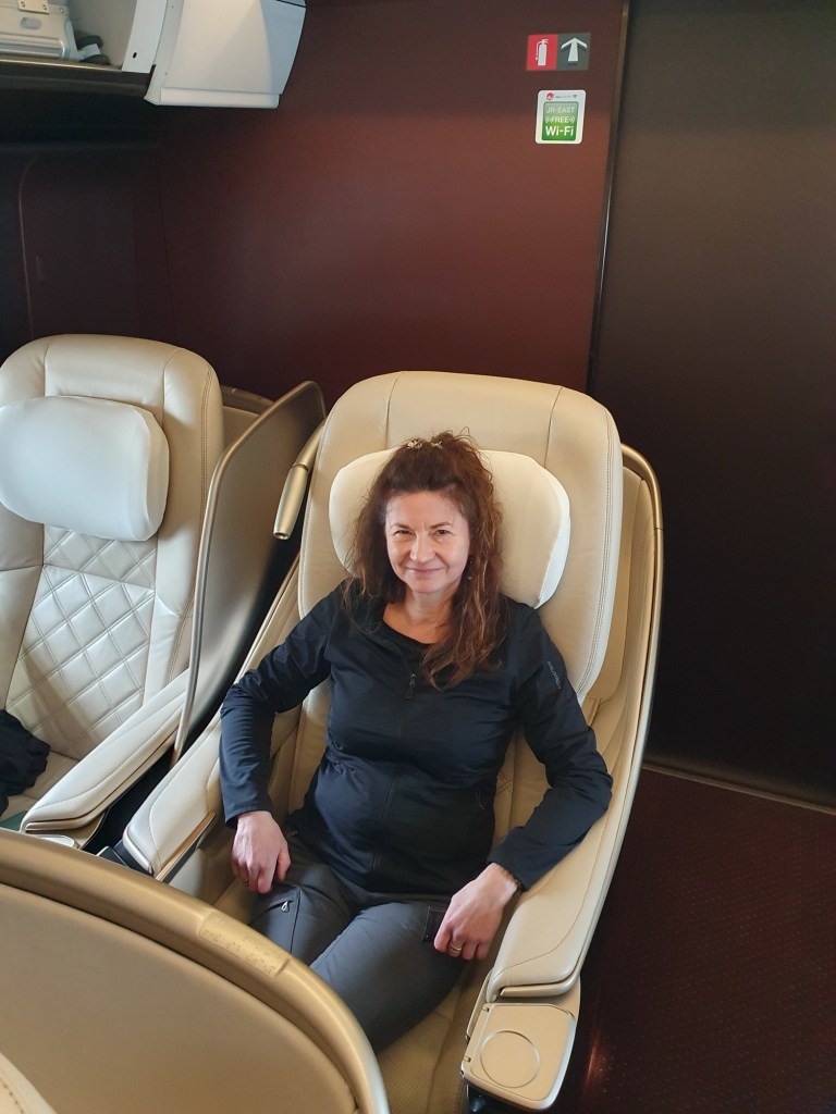 Ich hatte in diesem Augenblick den Impuls, mich einzumischen und folgendes zu sagen: „Nein, müssen Sie nicht, wenn ich als First Class Passagier, mein Gepäck noch unterbringen konnte.“ Ich habe aber besser geschwiegen und brav unser Gepäck abgegeben. Es bereitete mir dann aber ein stilles Vergnügen, als wir zum Check Inn aufgerufen wurden. Die gleiche Dame drängelte sich vor und wurde abgewiesen, erst als Gruppe 1 (Krethi mit seinem Plethi) durch waren, durfte die Business Dame in Gruppe 2 boarden. Was bin ich nur für ein gemeiner Giftzwerg! An Bord ging es dann weiter, die Dame war noch zu blöd oder war es Dreistigkeit, sich auf Ihren Platz zu setzen. Es gab nur keine Probleme, da wir gerne eng zusammensitzen und nicht 4 Plätze beanspruchten.
