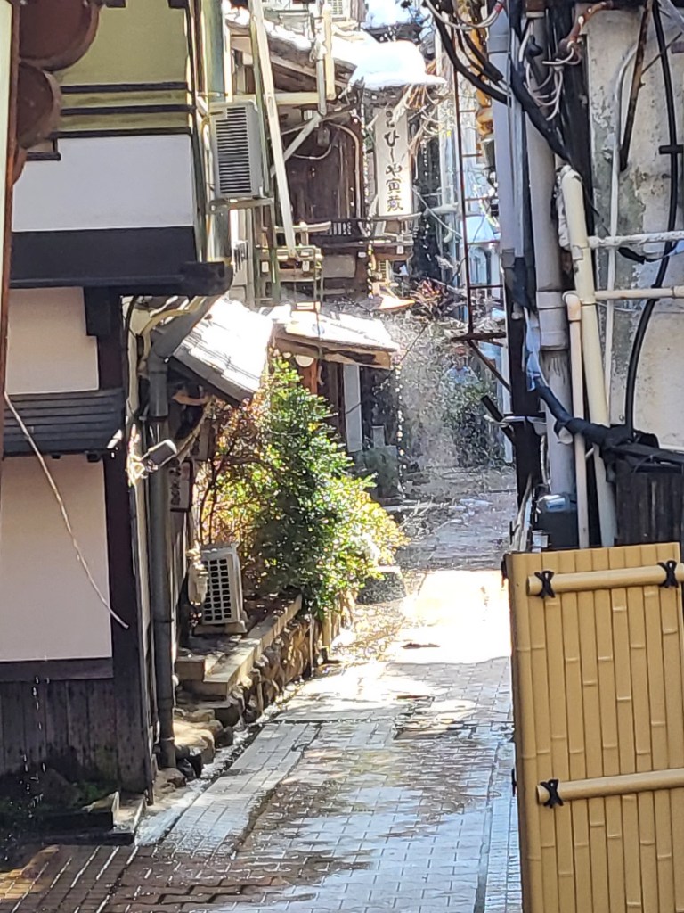 Wir dachten immer, die Stadt Yamanouchi ist nur interessant wegen des Affenparks und unseres schönen Ryokan Hotels. Nun sind wir gestern bereits eines besseren belehrt worden. Hinter der recht öden ersten Häuserzeile öffnen sich viele kleine Gassen, schöne Tempel, sauheiße Fuß-Außen-Onsen und gemütliche Izakaya Bars. Dazu ein traumhaftes Frühlingwetter, so läßt es sich auch in Japan gut leben. Auf das Leben oder wie der Japaner sagen würde: „Jinsei ni Tsuite“.