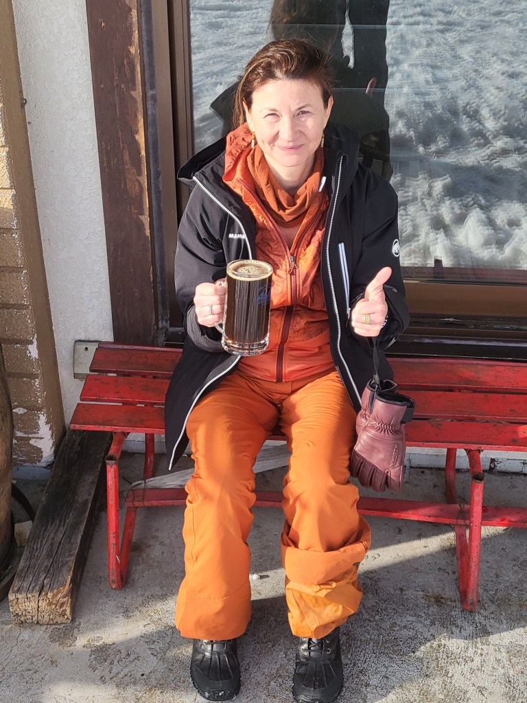 Wenn meine Angstfott erst einmal den Kniff raus hat, ist Sie (Plethi) nicht mehr aufzuhalten. Ihr erster Satz war, „Morgen würde ich gerne nochmal auf die Piste.“ Ich mußte leider ablehnen. Mein rechtes Bein schmerzte und die Wettervorhersage für Morgen lautete Regen und 16 Grad. Das hielt ich dann doch für nicht so Ideal.