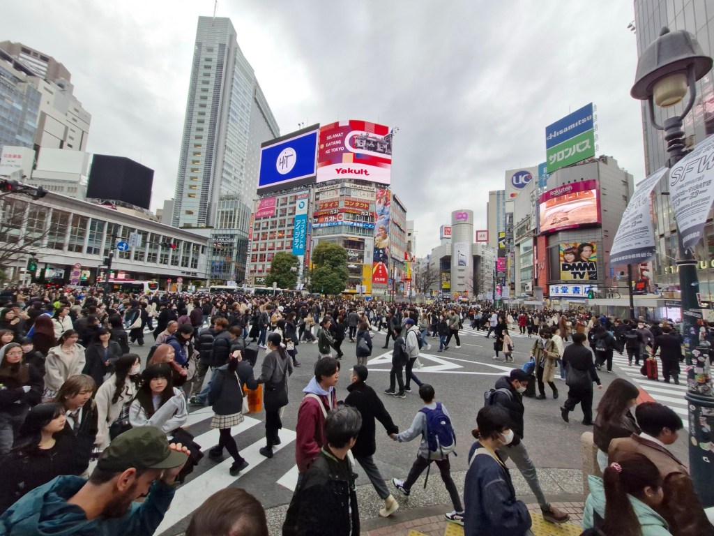 Danach ging es zum Shibuja Crossing. Es ist empfehlenswert, sich hier nun etwas Zeit zu nehmen und das Treiben an dieser, meistfotografierten Kreuzung dieser Welt, zu beobachten. In einer Grünphase wechseln hier zwischen 3.000 bis 15.000 Menschen die Straßenseite. Unglaublich, wenn man es nicht selber gesehen hat.