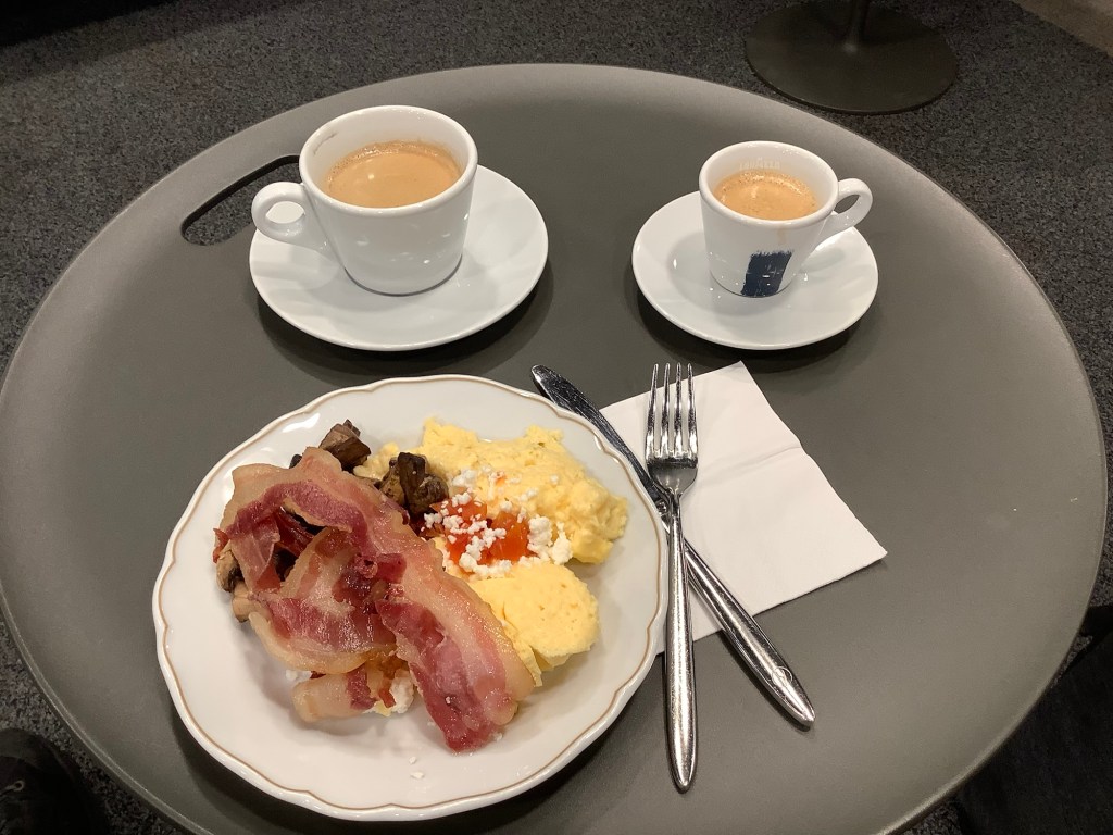 Aber wer redet denn von Tokyo, wenn es erst 9:00 Uhr war und wir noch nicht der Senator Lounge in Düsseldorf „Hallo“ gesagt haben? So ein kleines Frühstück geht immer, nur Plethi schwächelte etwas am Morgen. Erst nach einem leckeren Füchschen lief es auch bei Ihr wie gewohnt. Noch ein paar Worte zur Lounge. Wie haben sie selten so leer gesehen, am Morgen eine zusätzliche Wohltat.