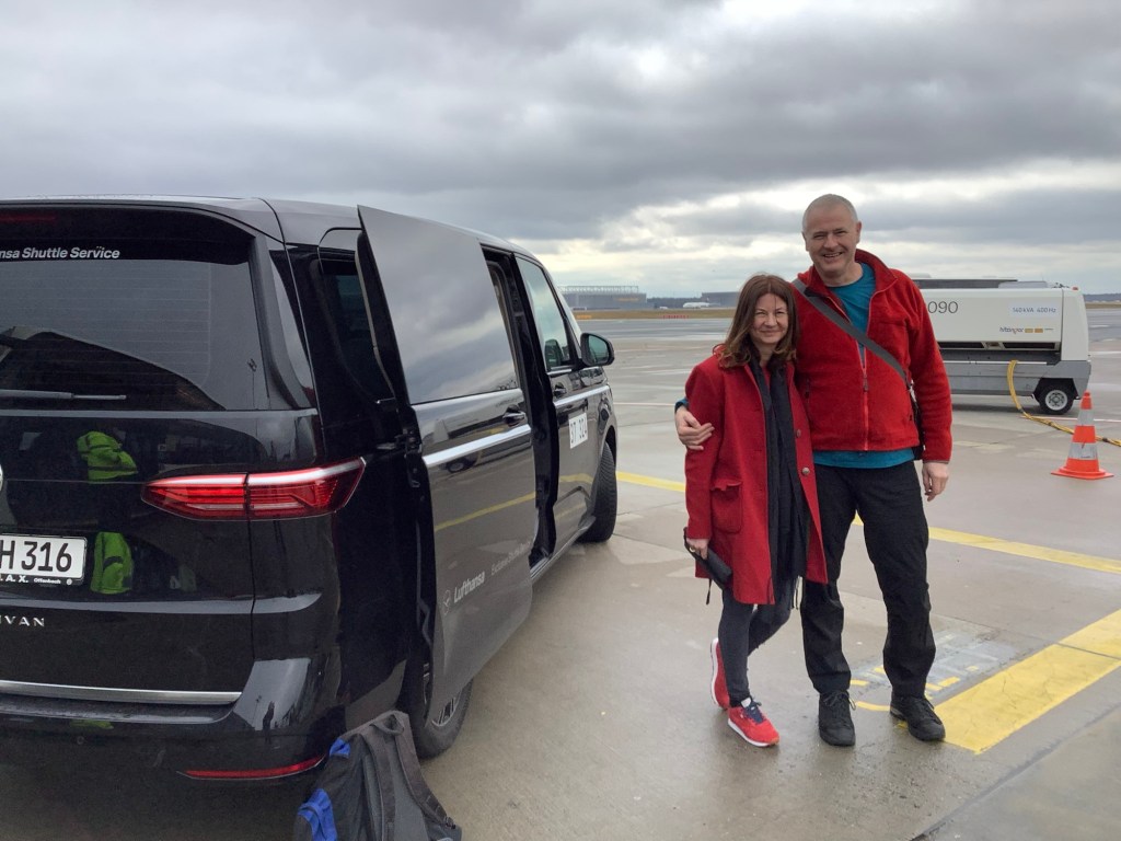 Wir landeten in FRA auf einer Außenposition und da wußte ich, es gibt noch was zu schmunzeln. Da unser Hauptfug in der ersten Klasse gebucht ist, steht bei solchen Landungen der Shuttle Service zur Verfügung. Wir stiegen also aus und während die restlichen Passagiere Ihr abgegebenes Handgepäck direkt auf dem Rollfeld in Empfang nahmen, wartete daneben ein schwarzer Van auf uns. Einfach herrlich und unbezahlbar. Wir wurden dann zum Hauptgebäude gefahren und machten uns auf, den Flughafen kurz zu verlassen um ihn alsbald, über das First Class Terminal (FCT) wieder zu betreten.