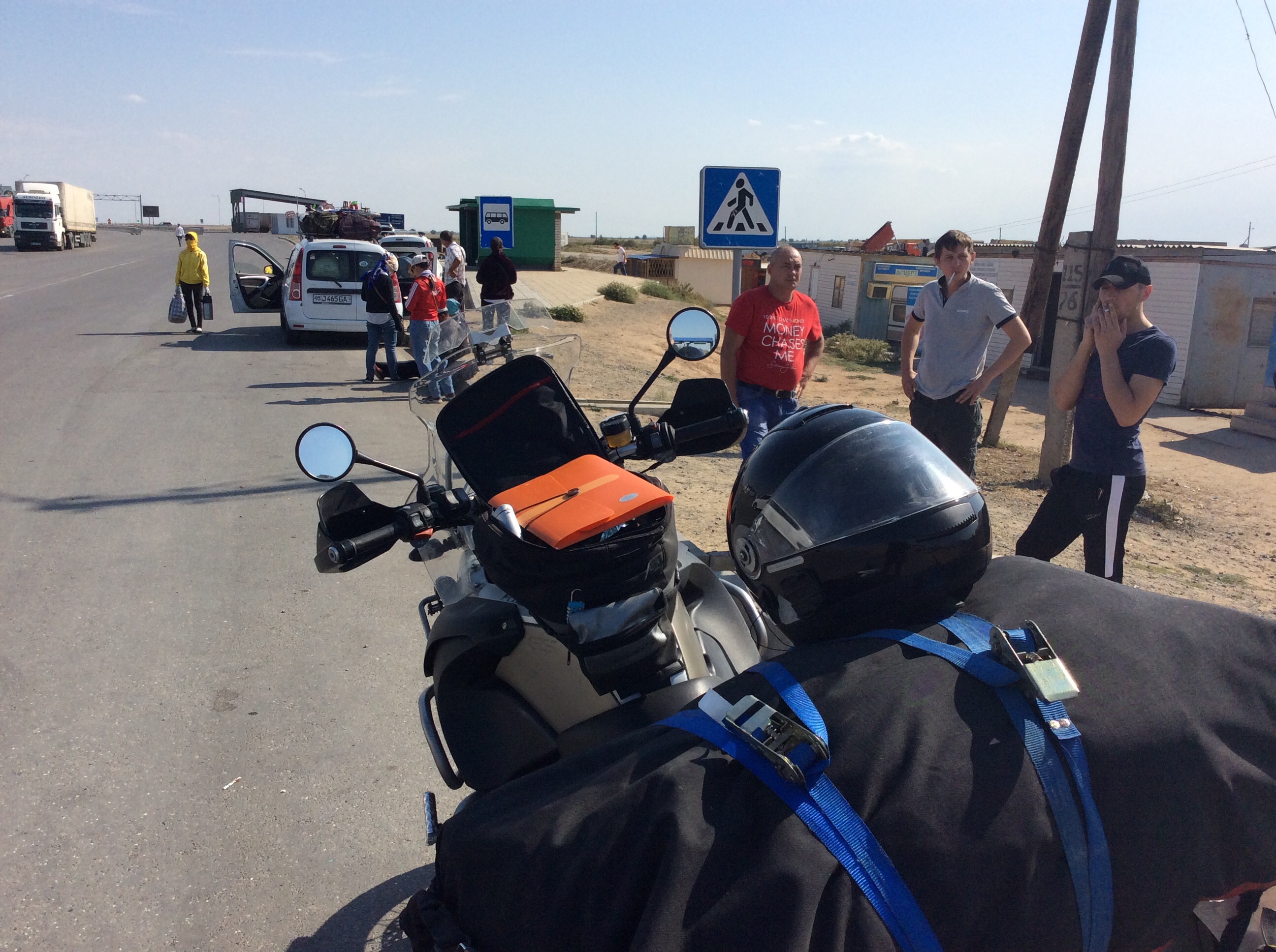 Ich liege super im Zeitplan. Nur noch 250km bis zur usbekischen Grenze. Um 8:30 ging’s los. Nun bedeuten 250km mindestens einmal tanken (zur Sicherheit habe ich immer 250km Reserve im Tank) und mindest 3 Stunden Fahrzeit. Dazu dann mein Navi. Es ist das erste Mal auf dieser Tour, dass ich einen Punkt nicht finde, bzw. die Routenführung im Nirvana landet. Weit und breit keine Grenzstation. Nach einer Stunde vergeblichen Suchen, fange ich an, die Leute in Dörfern und an Rastplätzen zu fragen und es dauert nicht lange, bis ich die Spur aufgenommen habe. Nach einer weiteren Stunde finde ich dann eine schnuckelige kleine Grenzstation mit null Andrang. Hauptgewinn – denkste!! Niete