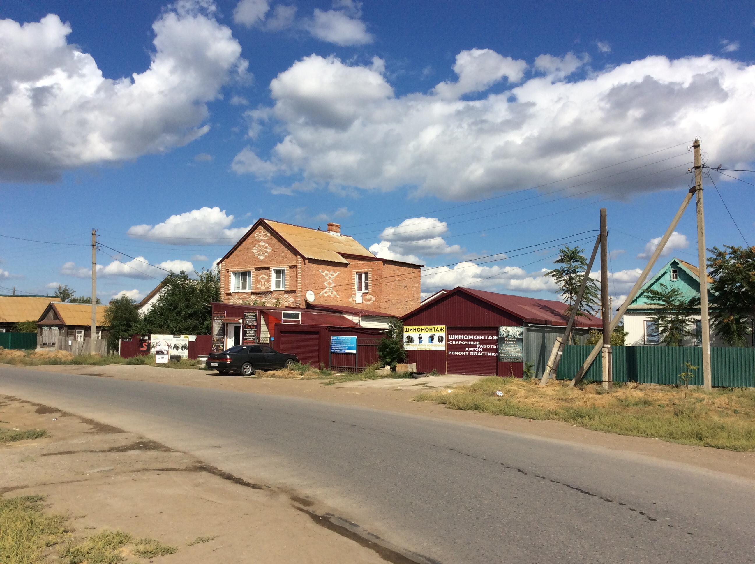 Mitten im Wolgadelta aber auf direkter Route von Georgien nach Kasachstan. Ein idealer Ort für Reparaturen oder eine preiswerte Übernachtung.