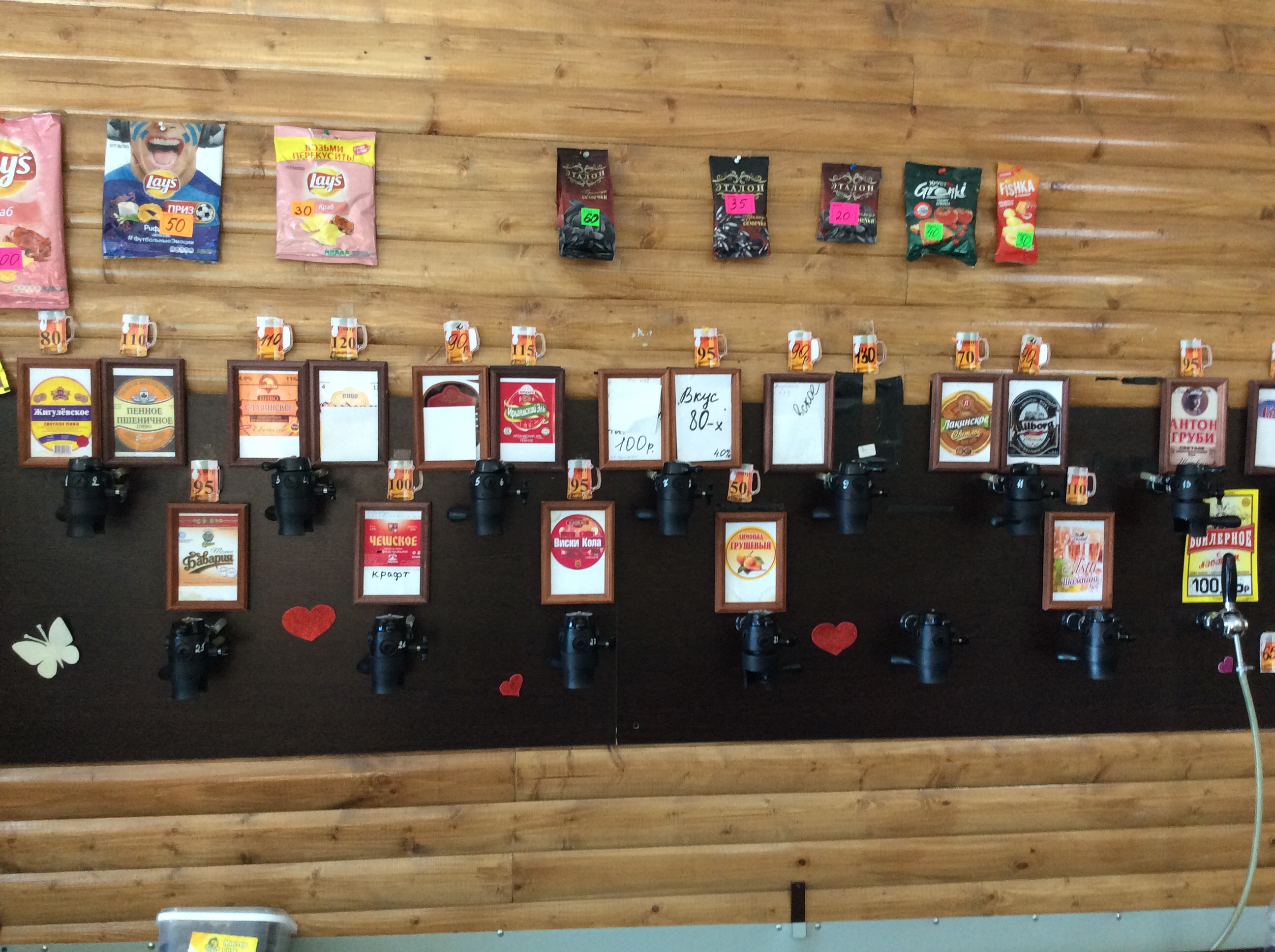 Bei meiner Unterkunft ist auch ein Bierlokal. Hier gibt es mindestens 40 Sorten Bier. Einige in Flaschen, den Rest bekommt man in Plastikflaschen direkt aus Zapfhähnen aus der Wand. Frisch abgefüllt, verschlossen und gut gekühlt. 2 Sorten schaffte ich heute.