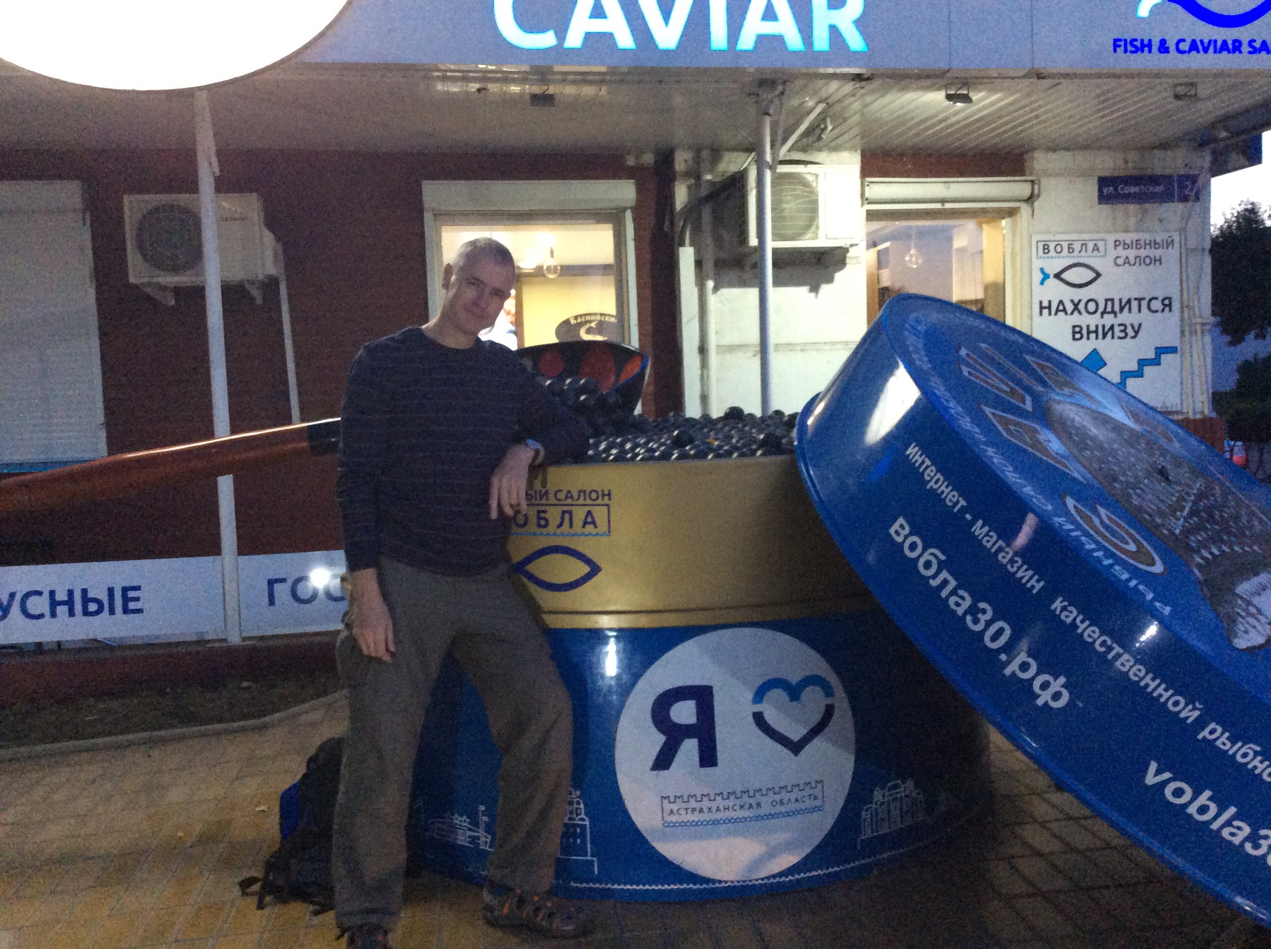 Wir bunkerten in einem Supermarkt noch ein paar Büchsen „Bud“(weiser) und getrockneten Fisch als Knabberei. Dann fuhren wir zurück und die Beiden luden mich zu sich, in Ihr Haus ein. Sie tischten dann noch Lachskaviar und gefrorener Fisch auf. Laut Kirill sind diese kleinen, ganzen Fische eine Delikatesse und kommen nur in Wolgadelta vor. Sogar bis Moskau sollen sie exportiert werden. Ich will nicht verschweigen, dass dies schon etwas gewöhnungsbedürftig war. Tiefgefrorene ca. 8cm lange Fische, die man zuerst auseinander reißt und dann nur das Filet (den Loin) entnimmt und ißt. Mit Bier schmeckt es tatsächlich!