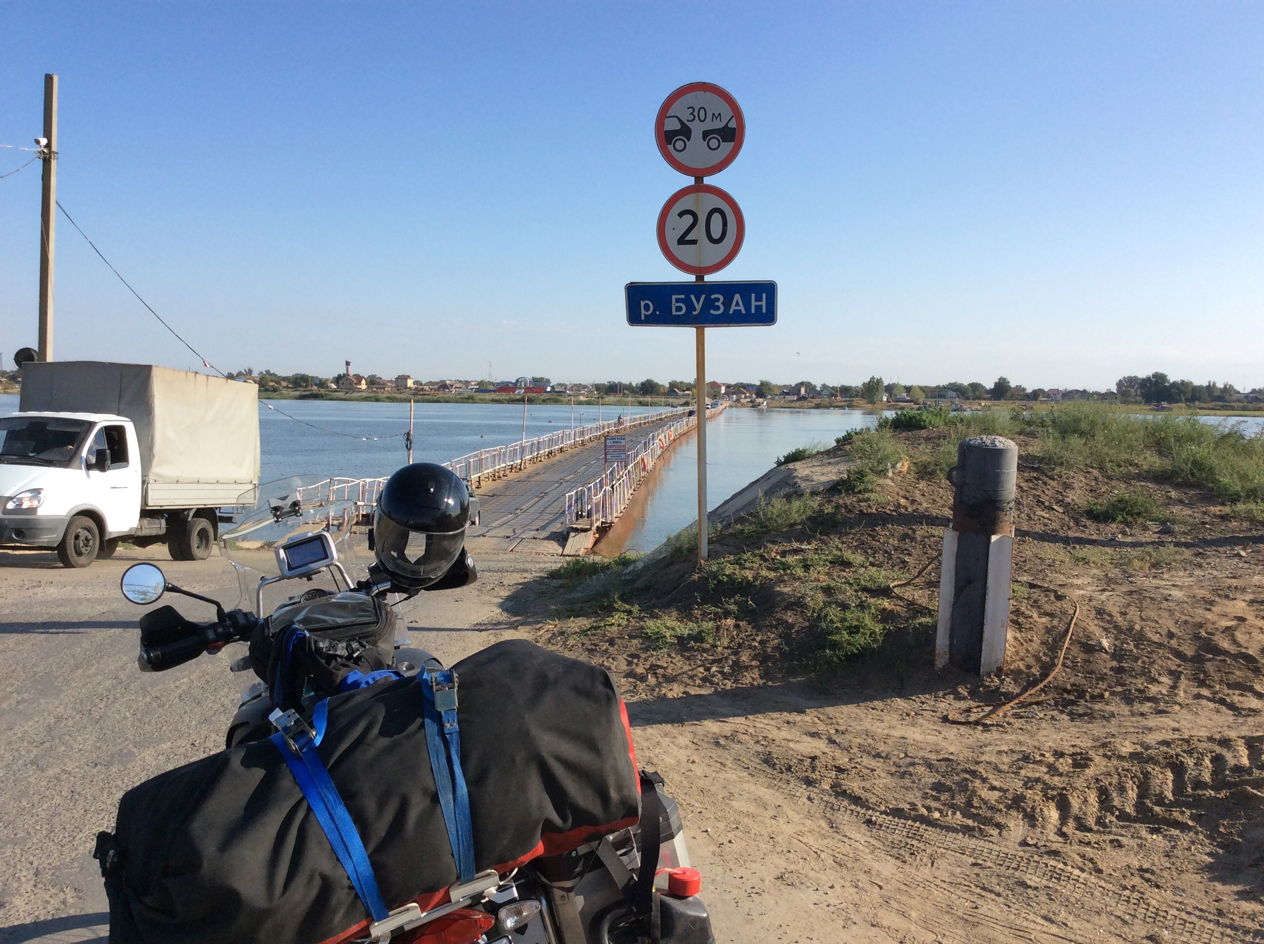 Zum Glück war ich nicht allein, kurz hinter mir folgte ein Minibus und ein kleiner Kasten-LKW. Die stoppen sofort und halfen mir auf. Sobald ich stand durchfuhr mich ein stechender Schmerz am linken Fuß. Nochmals Scheiße – vielleicht gebrochen. Aber ob der geneigte Leser das nun Glauben will oder nicht. Unter Schock stehend war mir das Scheiß egal. Was zählte waren die bereits oben formulierten Fragen. Die Jungs aus dem Minibus richteten die Maschine auf, der LKW Fahrer bot an, mich in die nächste Werkstatt, nach Astrachan zu bringen. Prima, da wollte ich sowieso hin. Ironie aus!