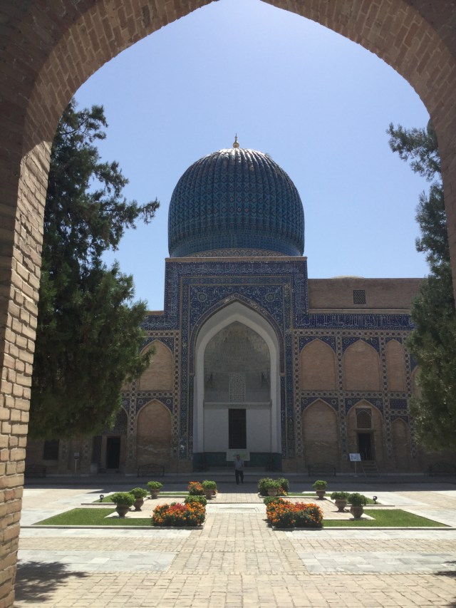 In den folgenden 2 Tagen wollen wir soviel wie möglich sehen. Da die Temperaturen hier nur bei max 36 Grad liegen, sollte dies möglich sein. Auf dem Programm stehen, Registan Platz, das Mausoleum Gur Emir, das Mausoleum Ruhobod, die Bibixonim Moschee, Afrosiyob und der Shohizinda Grabkomplex.
