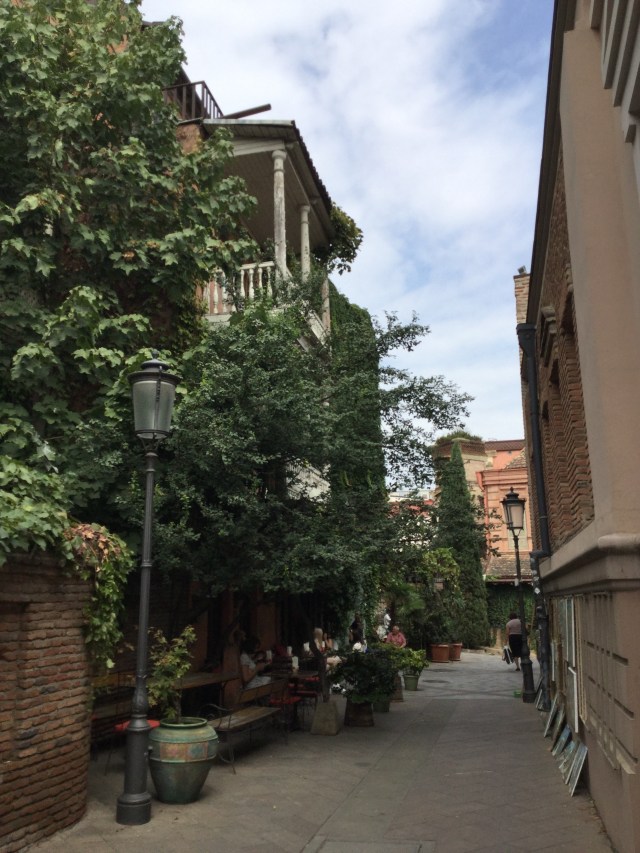 Am nächsten Morgen (13.9.) ging es uns beiden bereits besser. Mein Mosmieri Sonnenbrand klingt bereits ab und es brennt nicht mehr so höllisch und bei Dani hatte die siebte und achte Imodium endlich zu einer Beruhigung geführt. So konnten wir den letzten richtigen Tag unseres Urlaubs nun auch in Tiflis genießen. Wir bummelten den ganzen Tag durch die Altstadt, schauten bei der ein oder anderen Kirche vorbei und fuhren mit der Sesselbahn auf den nahen Festungsberg.