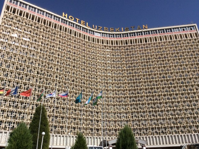 Nach der Landung in Tashkent bot sich uns ein ungewöhnliches Schauspiel. Noch vor der Passkontrolle lag ein langer Schalter. Dahinter, durch eine Scheibe mit kleinen Durchreichen getrennt, standen 3 Personen die wild stempelten. Ich also in den Rummel, an allen vorbeigedrängt und den langen Arm mit unseren Zertifikaten wedelnd durch die Anreiche gestreckt. Siehe da, Unverschämtheit hilft, mir wird der Zettel entrissen, ungeprüft bestempelt (2 Sekunden) und zurückgereicht. Das war die Kontrolle zu Covid-19. Ich erspare mir hier jegliche weitere Kommentierung und verweise auf Russland. Die eigentliche Passkontrolle 🛂 interessierte das abgestempelte Formular überhaupt nicht und so sind wir nach weiteren 20 Minuten in Usbekistan. Schnell die Rucksäcke am Band abgeholt, durch den Zoll und draußen wartet bereits unser Fahrdienst zum Hotel. Nach einer kurzen Fahrt betreten wir glücklich unser Hotelzimmer, gehen frühstücken und liegen ab 8:00 in einem herrlichen klimatisierten Zimmer.