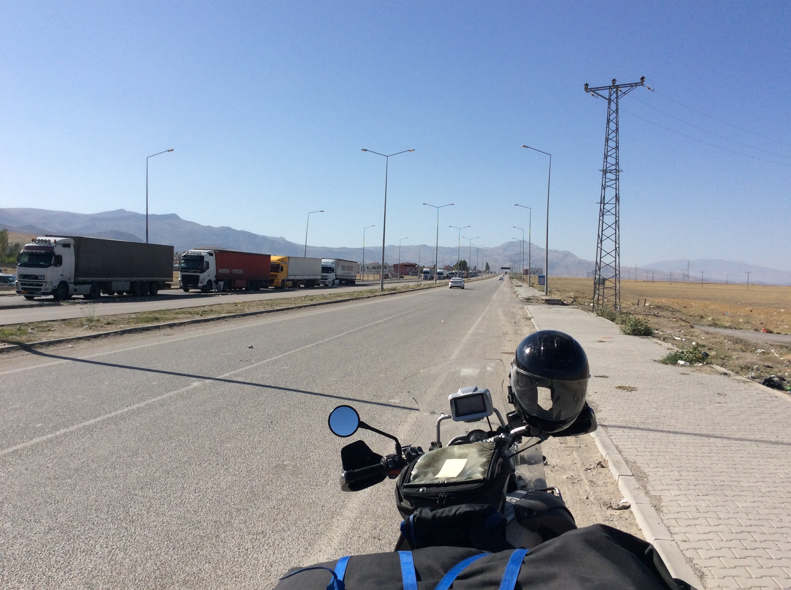 Auf der türkischen Seite lief es dann leider nicht so optimal. Ich sage nur 3 1/2 Stunden. Zuerst ließ man mich 10 Minuten im Niemandsland stehen, bevor der türkische Grenzer das Tor öffnete. Dann funktionierte das EDV System für die Passkontrolle nicht (wie vor 2 Jahren). Ich legte mich deshalb auf eine Parkbank und schlief 30 Minuten. Dann meinte ein schlauer Türke, ich könne ja auch zum Schalter der LKW Fahrer gehen. Dort würde das System funktionieren. Aha!!